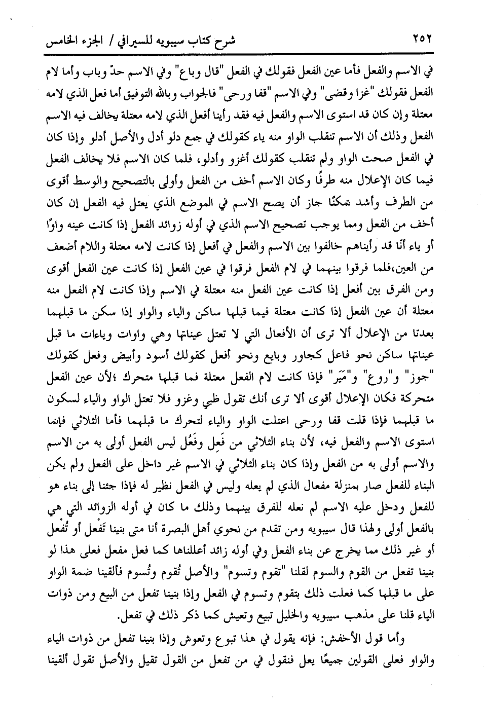 في الاسم والفعل فأما عين الفعل فقولك في الفعل " قال وباع " وفي الاسم حدّ وباب وأما لام الفعل فقولك " غزا وقضى " وفي الاسم " قفا ورحى " فالجواب وبالله التوفيق أما فعل الذي لامه معتلة وإن كان قد استوى الاسم والفعل فيه فقد رأينا أفعل الذي لامه معتلة يخالف فيه الاسم الفعل وذلك أن الاسم تنقلب الواو منه ياء كقولك في جمع دلو أدل والأصل أدلو وإذا كان في الفعل صحت الواو ولم تنقلب كقولك أغزو وأدلو، فلما كان الاسم فلا