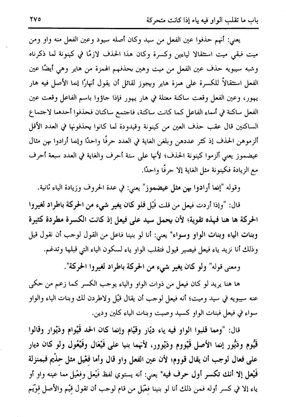 ومعنى قوله " ولو كان يغير شيء من الحركة باطراد لغيروا الحركة ".