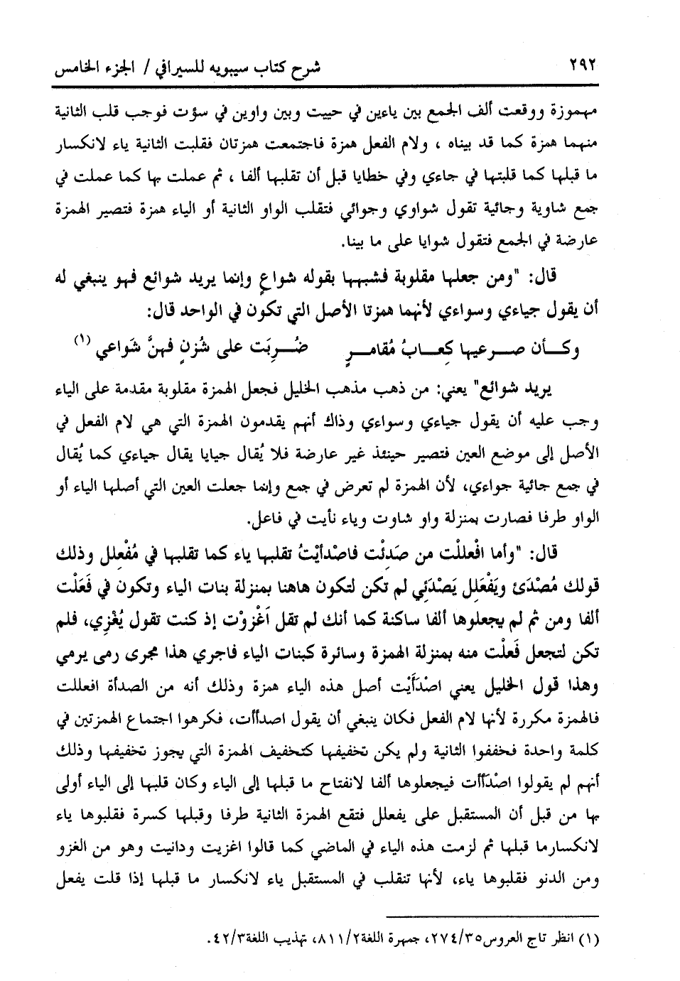 قال: " ومن جعلها مقلوبة فشبهها بقوله شواع وإنما يريد شوائع فهو ينبغي له أن يقول جياءي وسواءي لأنهما همزتا الأصل التي تكون في الواحد قال: