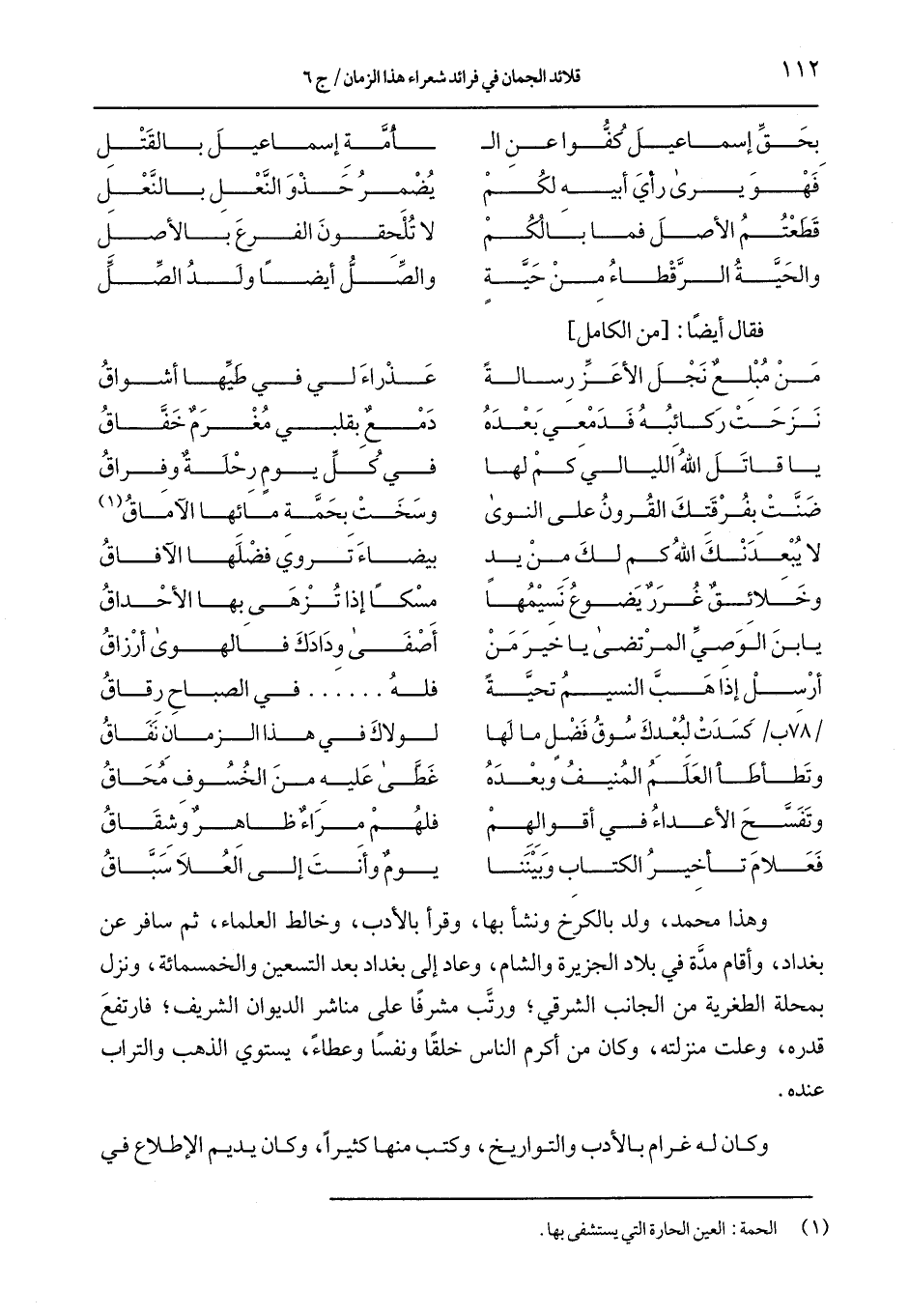 كتاب قلائد الجمان في فرائد شعراء هذا الزمان (اسم الجزء: 5)