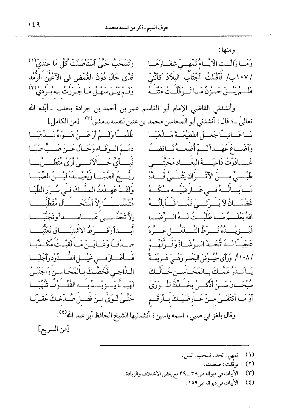 وأنشدني القاضي الإمام أبو القاسم عمر بن أحمد بن جراادة بحلب- أيده الله تعالى-, قال: أنشدني أبو المحاسن محمد بن عنين لنفسه بدمشق: [من الكامل]