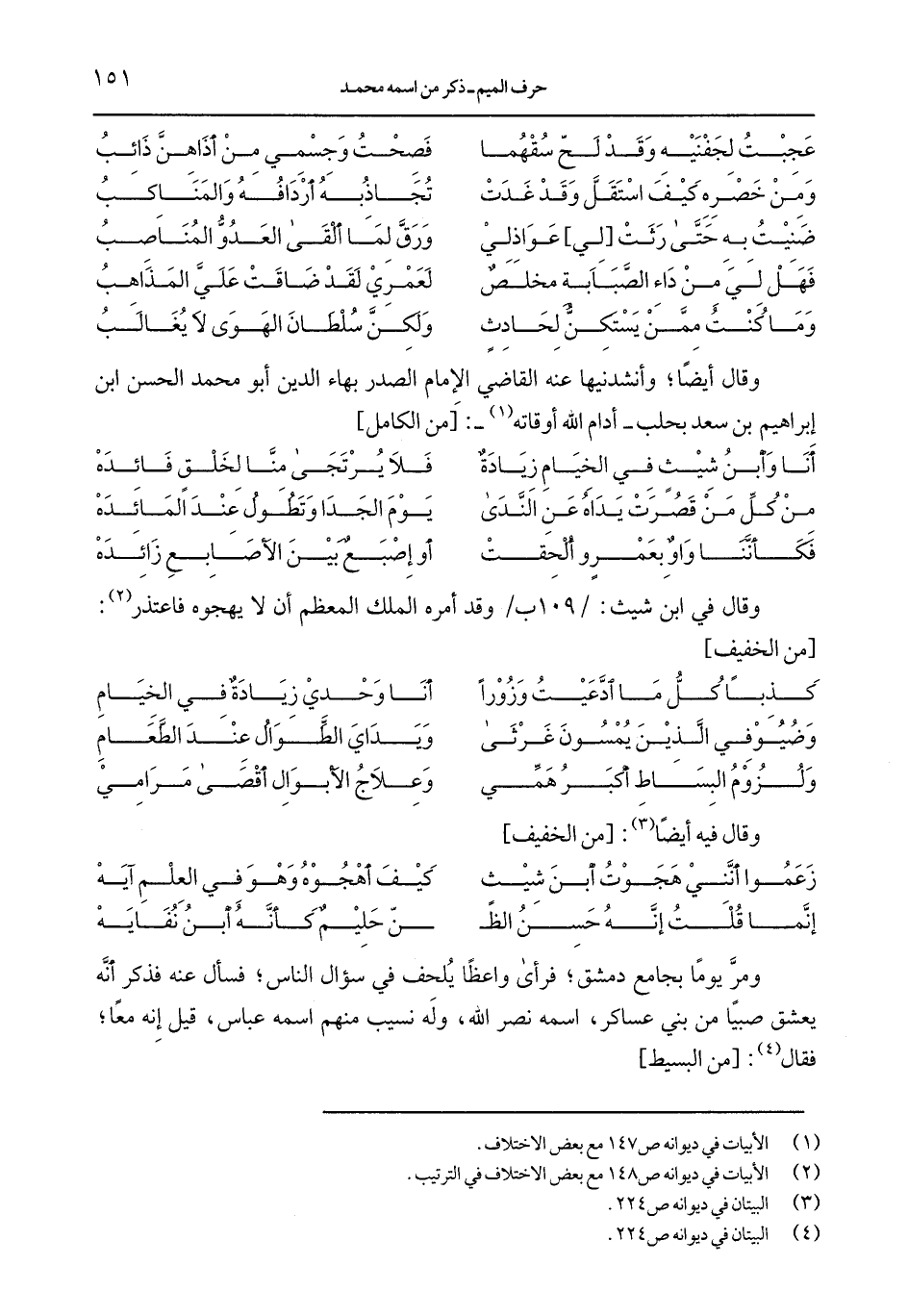 وقال أيضّا, وأنشدنيها عنه القاضى الإمام الصدر بهاء الدين أبو محمد الحسن ابن إبراهيم بن سعد بحلب- أدام الله أوقاته-: [من الكمال]