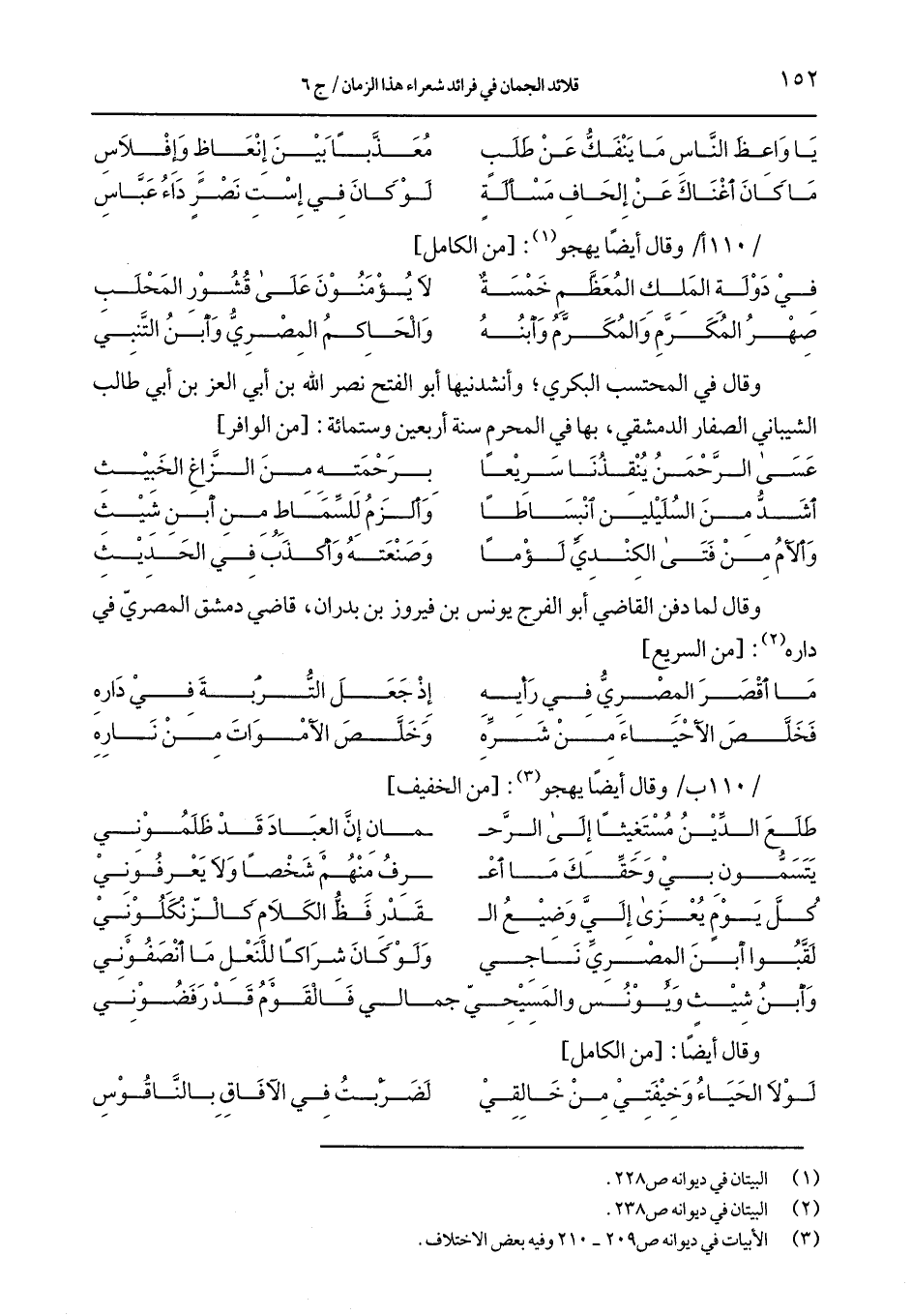 وقال في المحتسب البكري, وأنشدنيها أبو الفتح نصر الله بن أبن العز بن أبي طالب الشيباني الصفار الدمشقي, بها في المحرم سنة أربعين وستمائة: [من الوافر]
