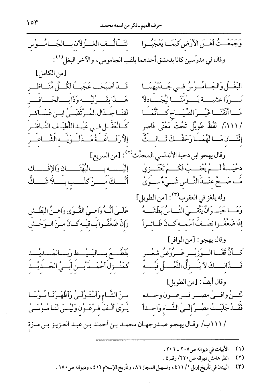 وقال في مدّرسين كانا بدمشق أحدهما يلقب الجاموس, والآخر البغل:
