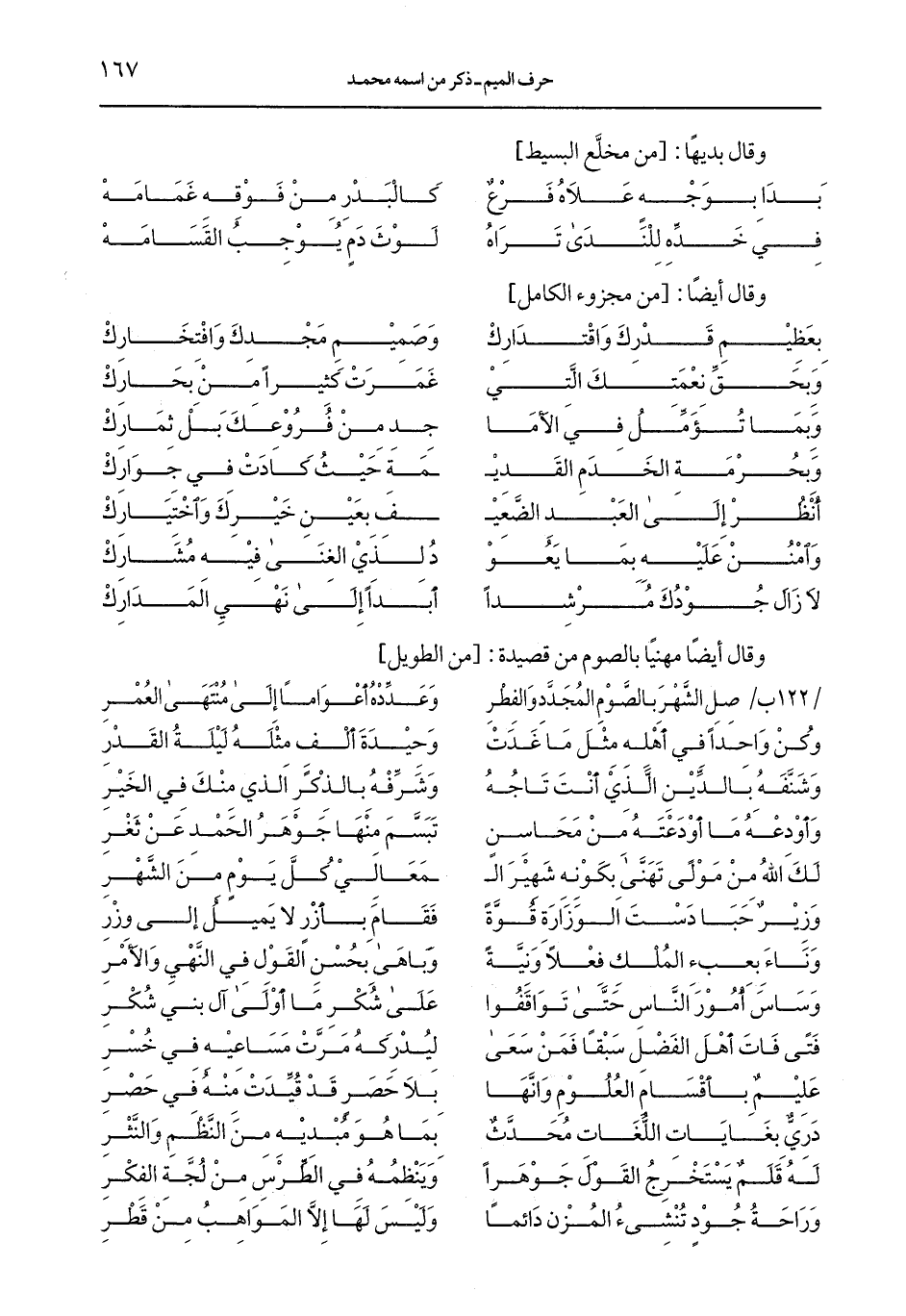 له قلم يستخرج القول جوهرًا ... وينظمه في الطِّرس من لجَّة الفكر
