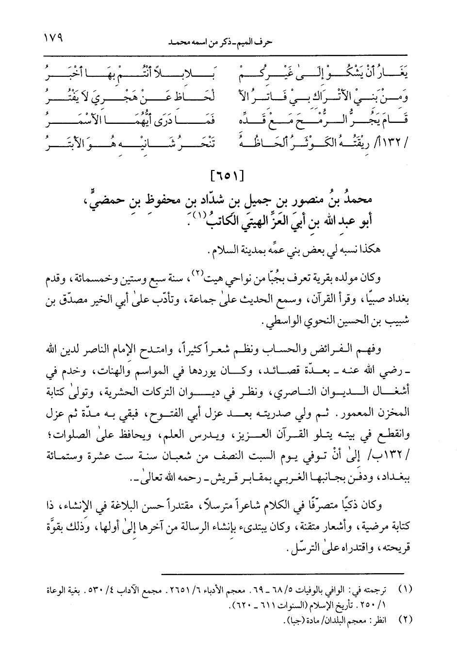 محمد بن منصور بن جميل بن شدّاد بن محفوظ بن حمضيّ، أبو عبد الله بن أبي العزّ الهيتي الكاتب.
