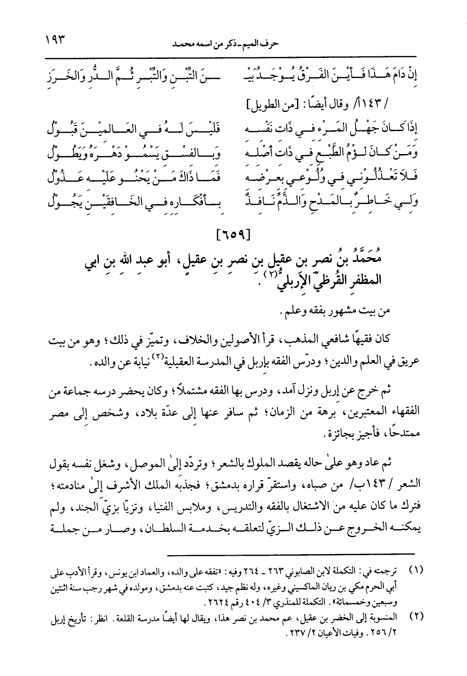 محمّد بن نصر بن عقيل, أبو عبد الله بن أبي المظفر القرظي الإربلي.