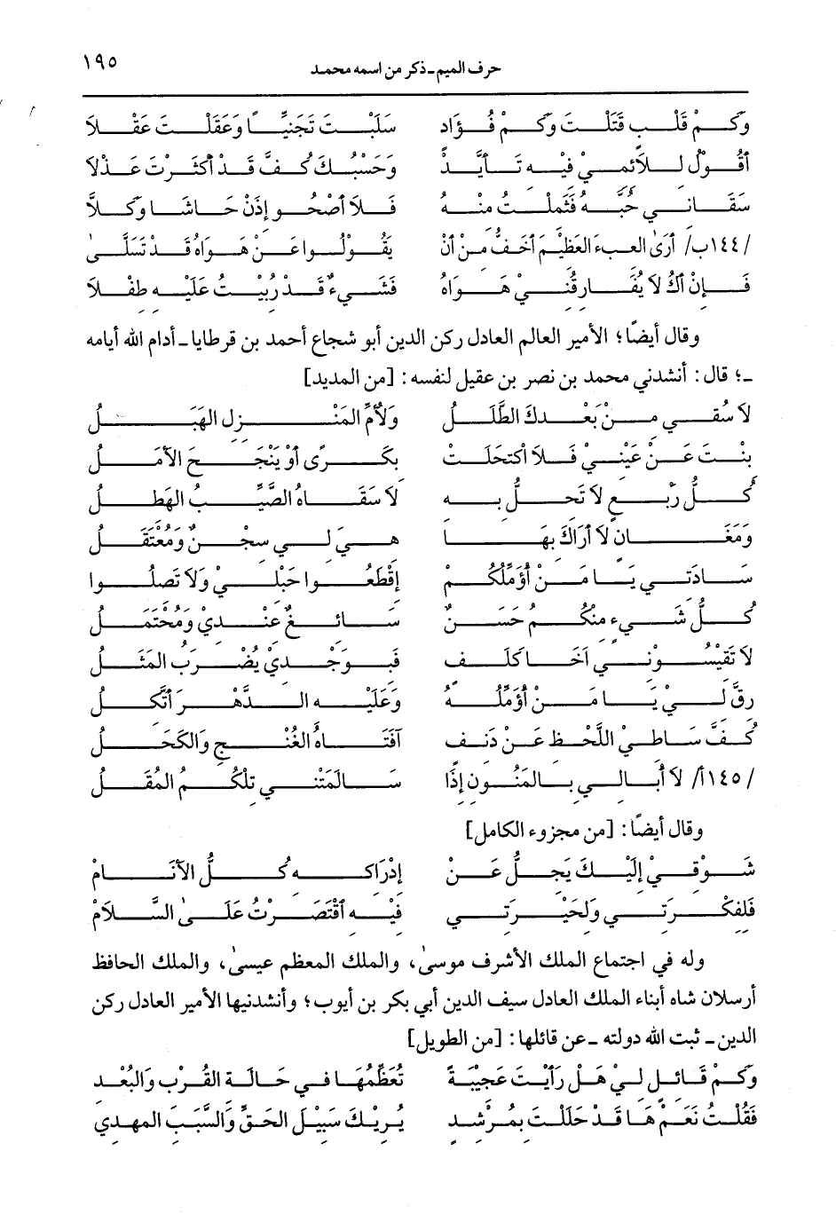 وقال أيضًا, الأمير العالم العادل ركن الدين أبو شجاع أحمد بن قرطايا- أدام الله أيامه-, قال: أنشدني محمد بن نصر بن عقيل لنفسه: [من المديد]
