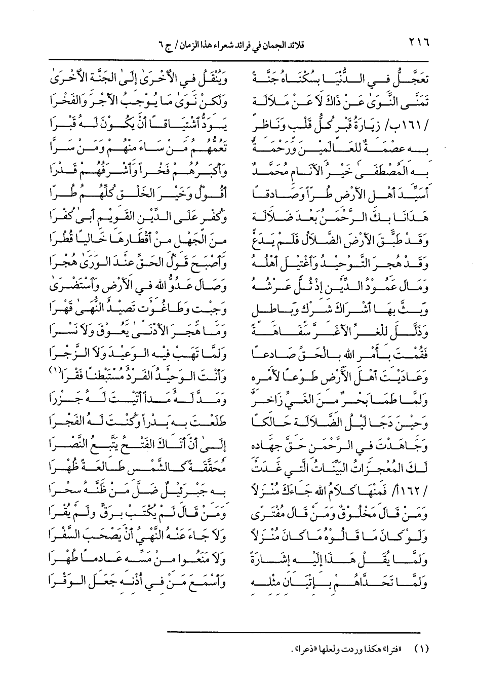 / 162 أ/ فمنها كلام الله جاءك منزلًا ... به جبرئيلٌ ضلَّ من ظنَّه سحرا