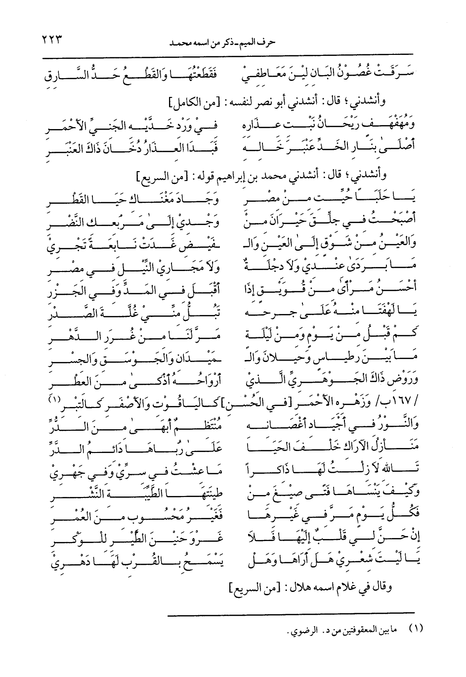 وأنشدني؛ قال: أنشدني محمد بن إبراهيم قوله: [من السريع]