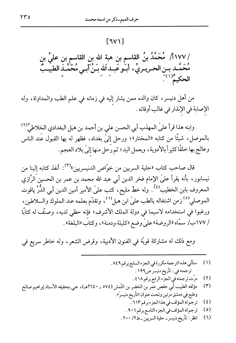 / 177 أ/ محمَّد بن القاسم بن هبة الله بن القاسم بن عليِّ بن محمَّد بن الحريريِّ، أبو عبد الله بن أبي محمدٍ الطبيب الحكيم.