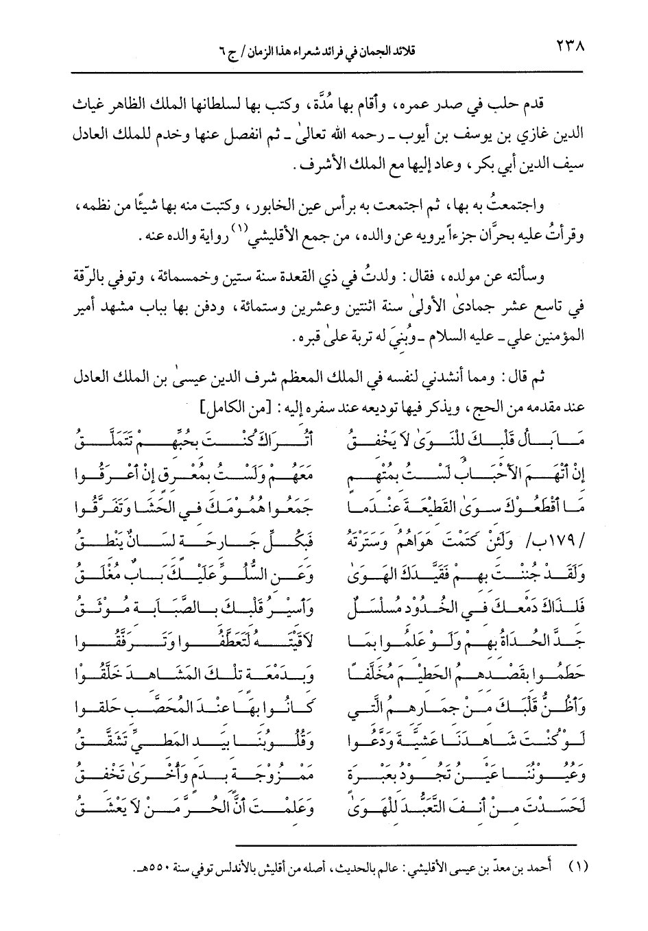 واجتمعت به بها، ثم اجتمعت به برأس عين الخابور، وكتب منها بها شيئًا من نظمه، وقرأت عليه بحرَّان جزءاً يرويه عن والده، من جمع الأقليشي رواية والده عنه.