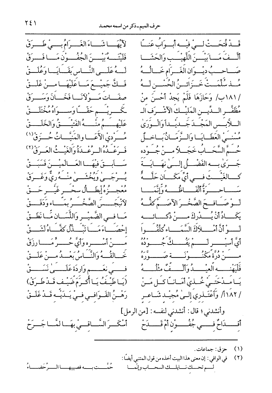 / 182 أ/ واعتذري إلى مجيدٍ شاعرٍ ... رهن القوافي في يديه قد غلق