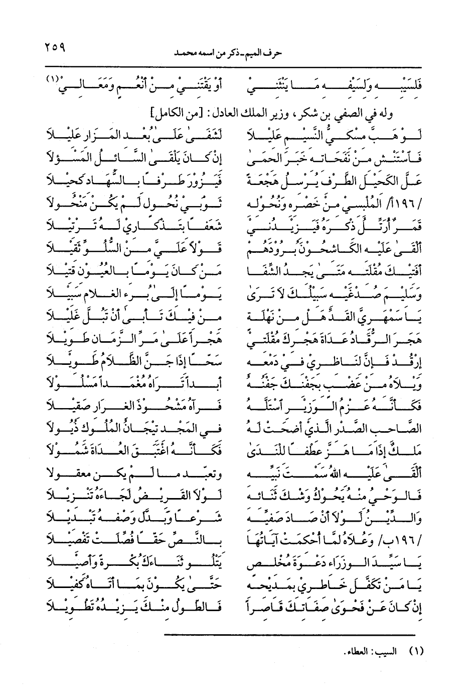 وله في الصفي بن شكر، وزير الملك العادل: [من الكامل]