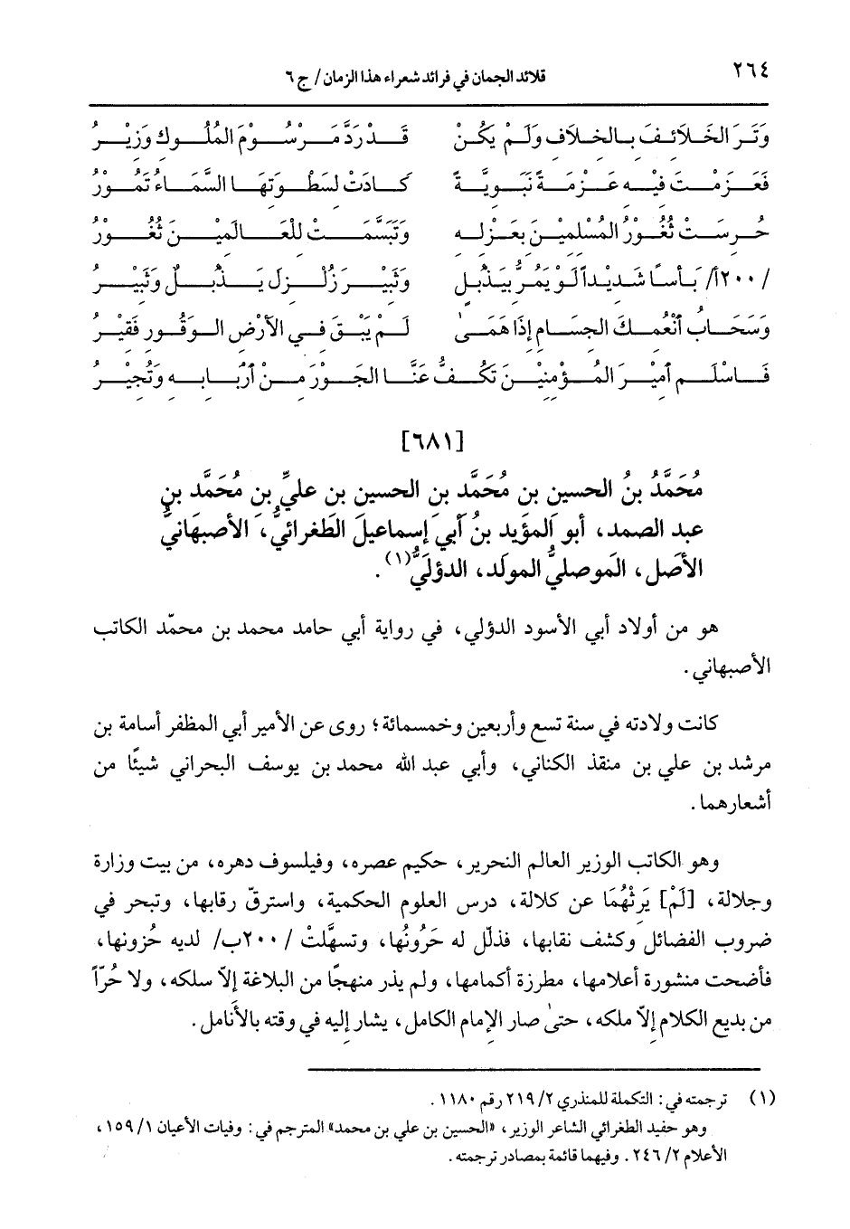 محمَّد بن الحسين بن محمَّد بن الحسين بن عليِّ بن محمَّد بن عبد الصمد، أبو المؤيد بن أبي إسماعيل الطغرائيُّ، الأصبهانيُّ الأصل، الموصليُّ المولد، الدؤليُّ.