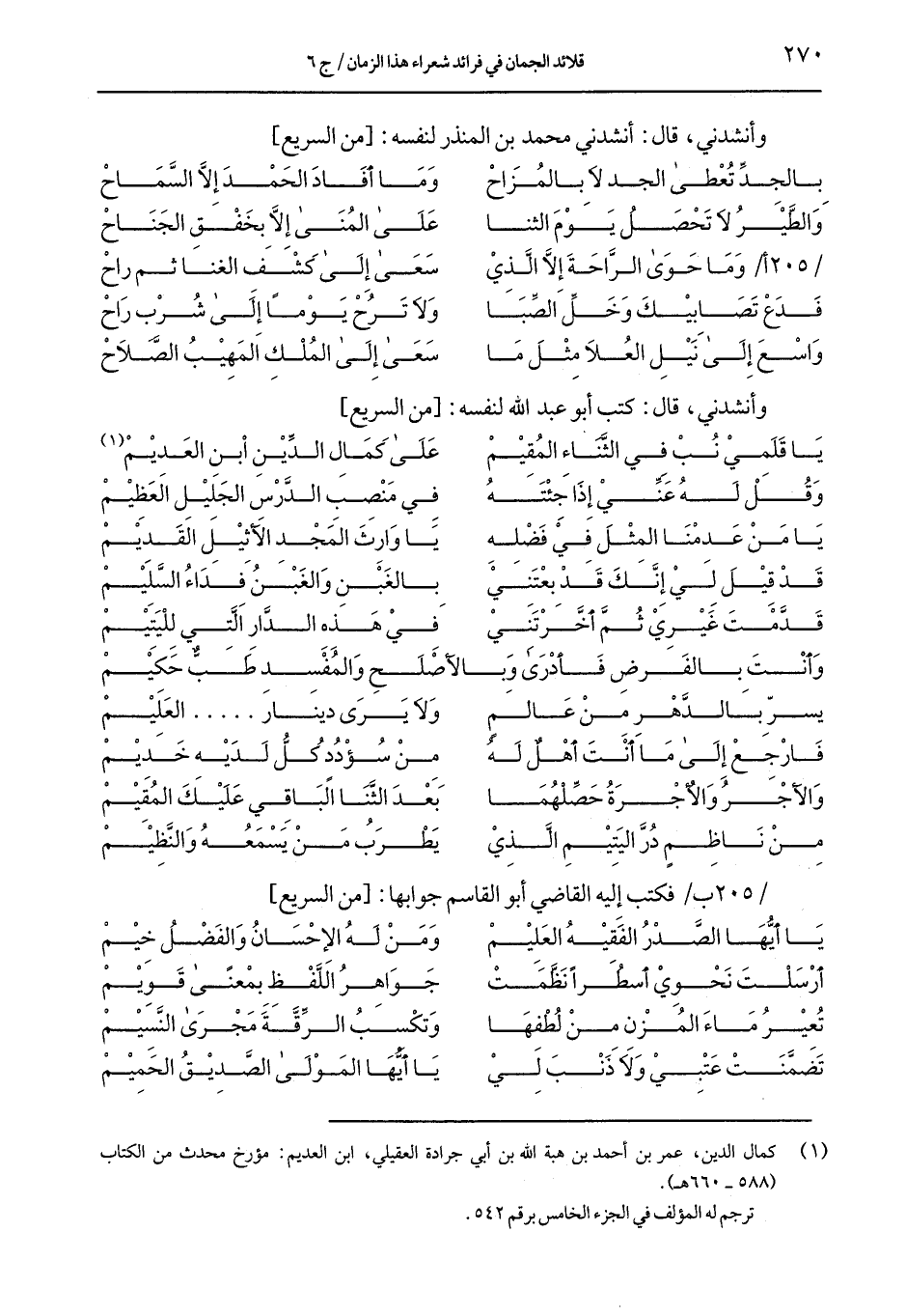 كتاب قلائد الجمان في فرائد شعراء هذا الزمان (اسم الجزء: 5)