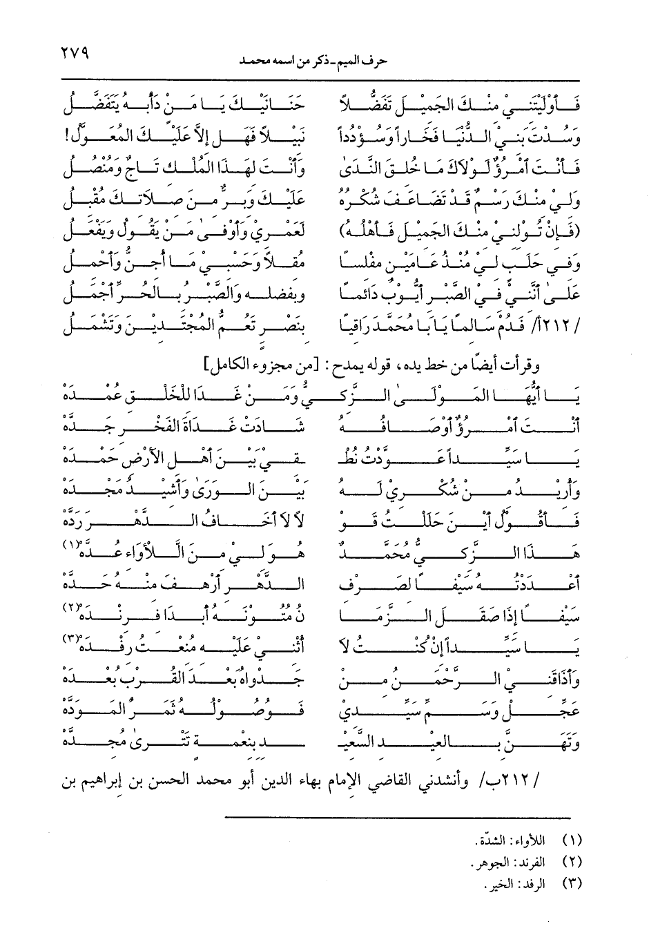 / 212 أ/ فدم سالمًا يا با محمَّد راقيًا ... بنصرٍ تعمُّ المجتدين وتشمل