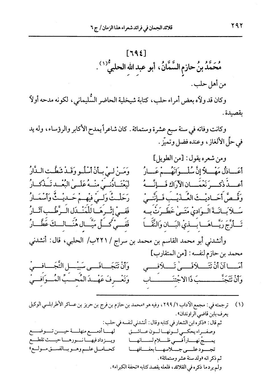 كتاب قلائد الجمان في فرائد شعراء هذا الزمان (اسم الجزء: 5)