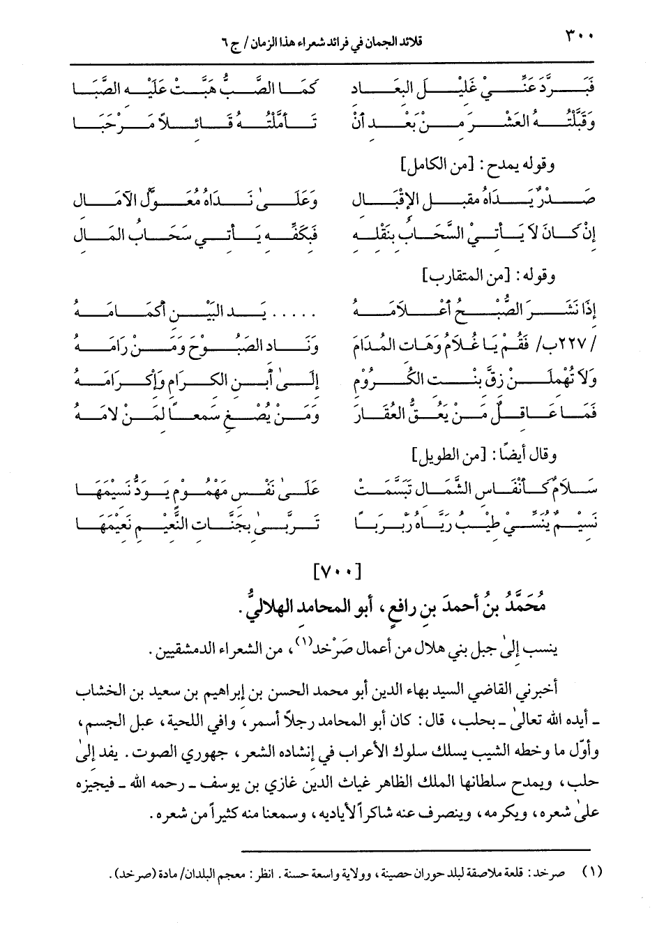 ينسب إلى جبل بني هلال من أعمال صرخد، من الشعراء الدمشقيين.
