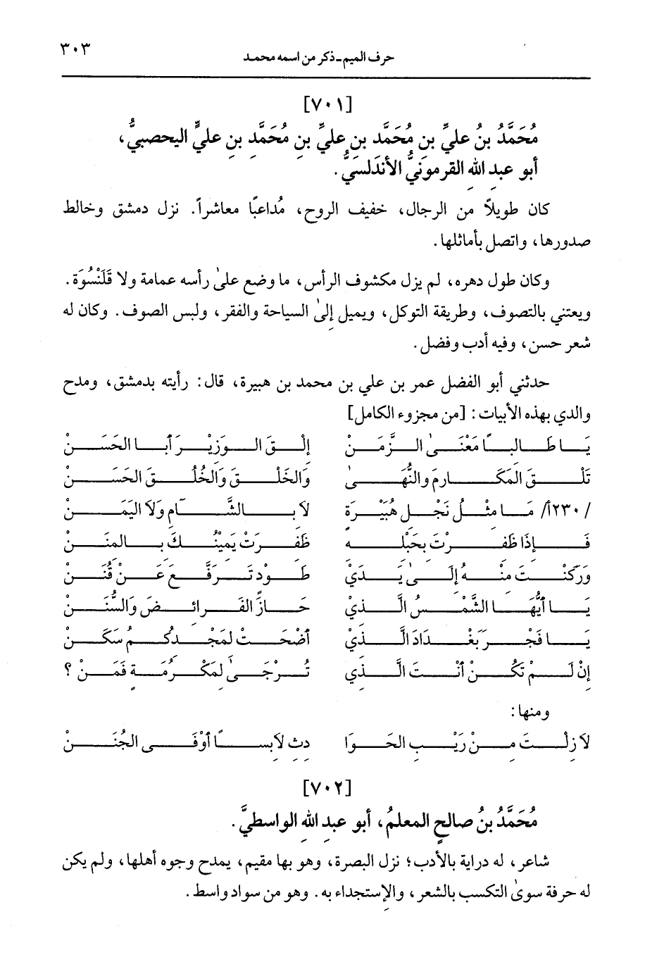 حدثني أبو الفضل عمر بن علي بن محمد بن هبيرة، قال: رأيت بدمشق، ومدح والدي بهذه الأبيات: [من مجزوء الكامل]