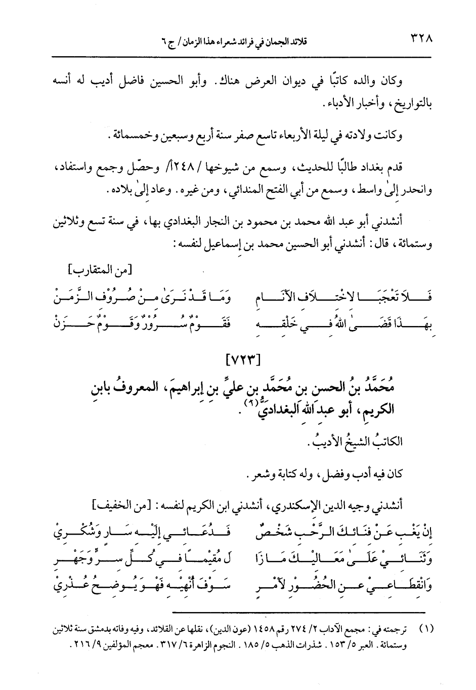 كتاب قلائد الجمان في فرائد شعراء هذا الزمان (اسم الجزء: 5)