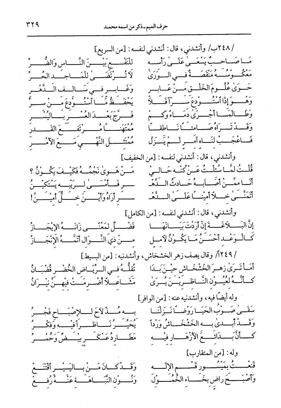 / 248 ب/ وأنشدني، قال: أنشدني لنفسه: [من السريع]