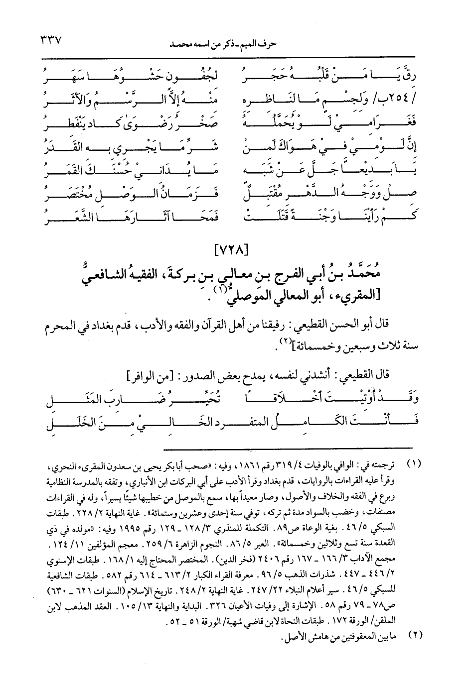 محمَّد بن أبي الفرج بن معالي بن بركة، الفقيه الشافعيُّ [المقريء، أبو المعالي الموصليُّ.