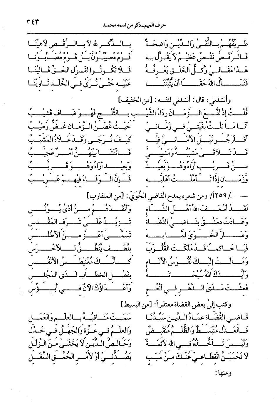/ 259 أ/ ومن شعره يمدح القاضي الخويّ: [من المتقارب]
