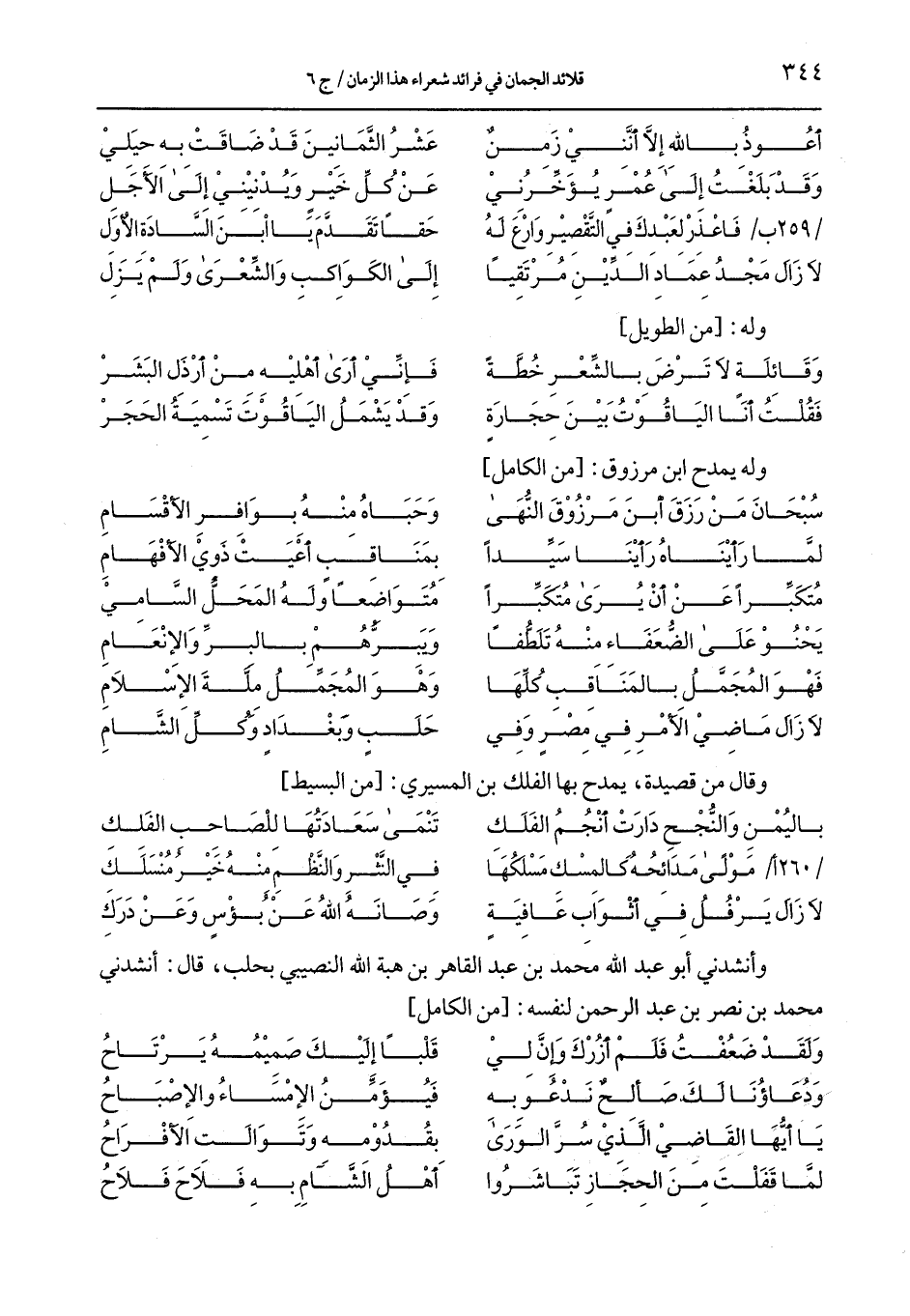 كتاب قلائد الجمان في فرائد شعراء هذا الزمان (اسم الجزء: 5)