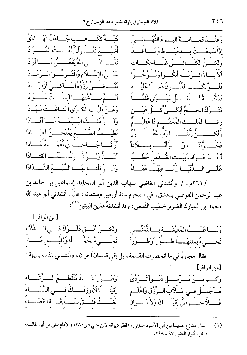 كتاب قلائد الجمان في فرائد شعراء هذا الزمان (اسم الجزء: 5)