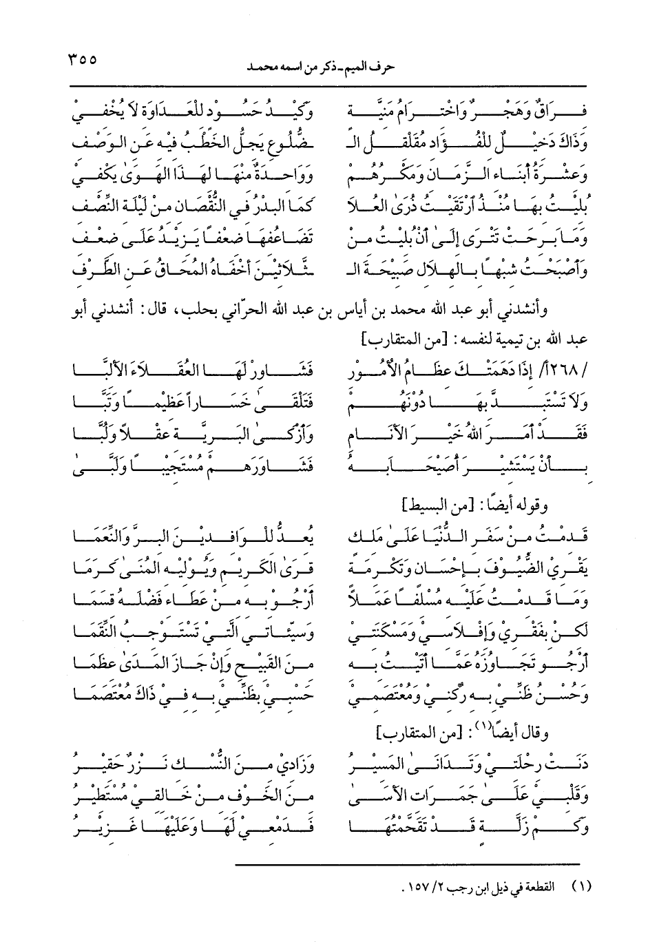 وأنشدني أبو عبد الله محمد بن أياس بن عبد الله الحرَّاني بحلب، قال: أنشدني أبو عبد الله بن تيمية لنفسه: [من المتقارب]