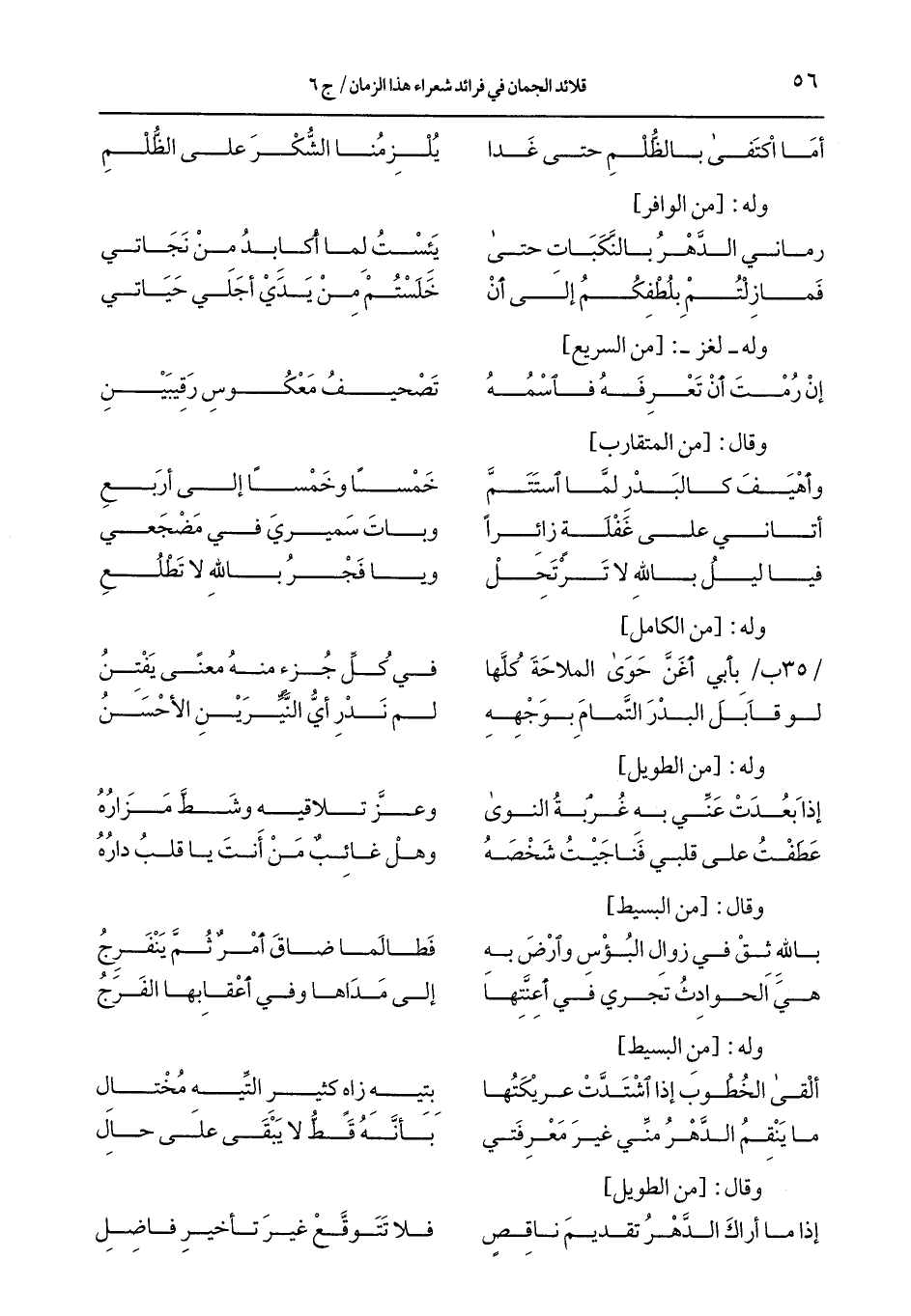 كتاب قلائد الجمان في فرائد شعراء هذا الزمان (اسم الجزء: 5)