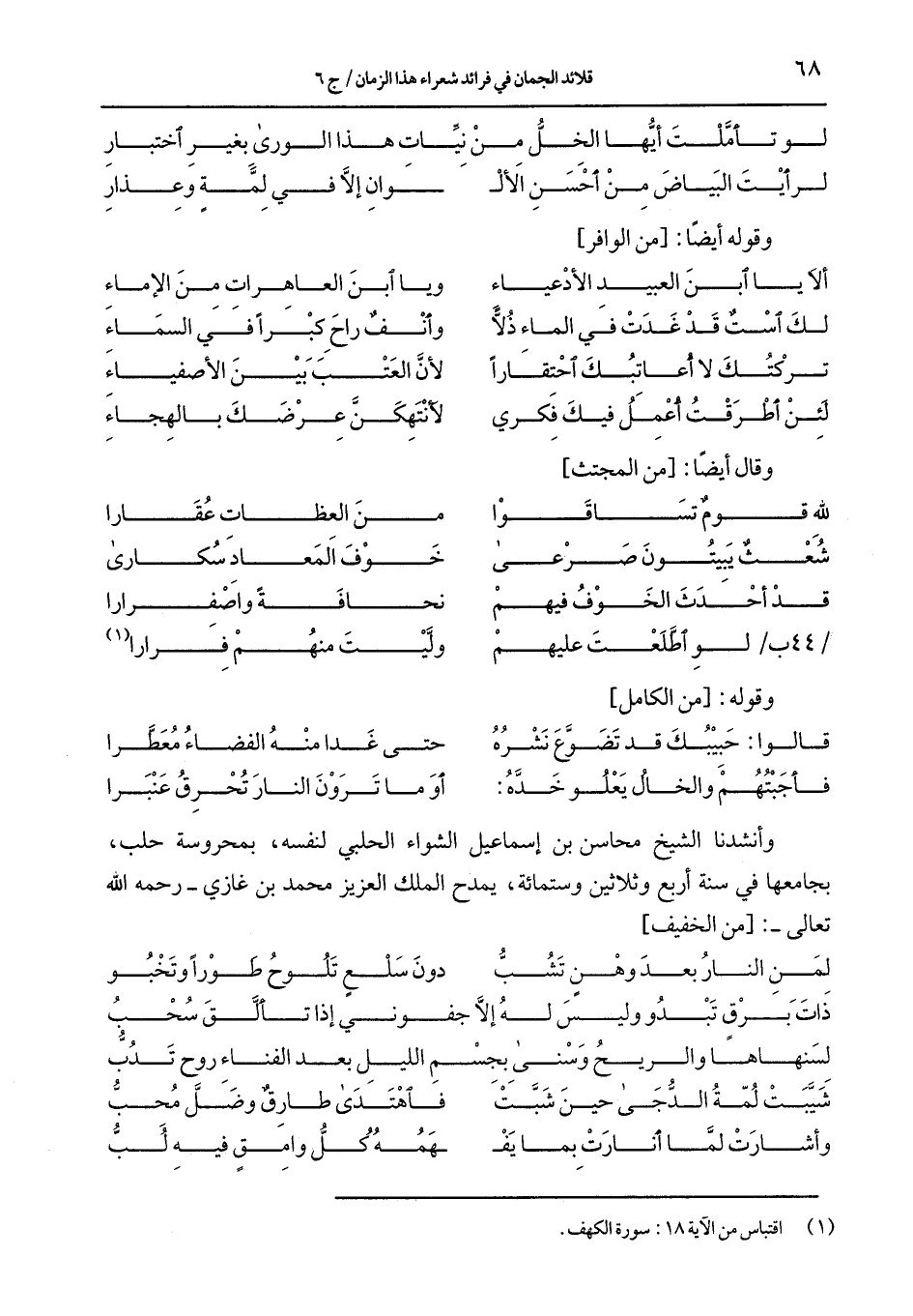 كتاب قلائد الجمان في فرائد شعراء هذا الزمان (اسم الجزء: 5)