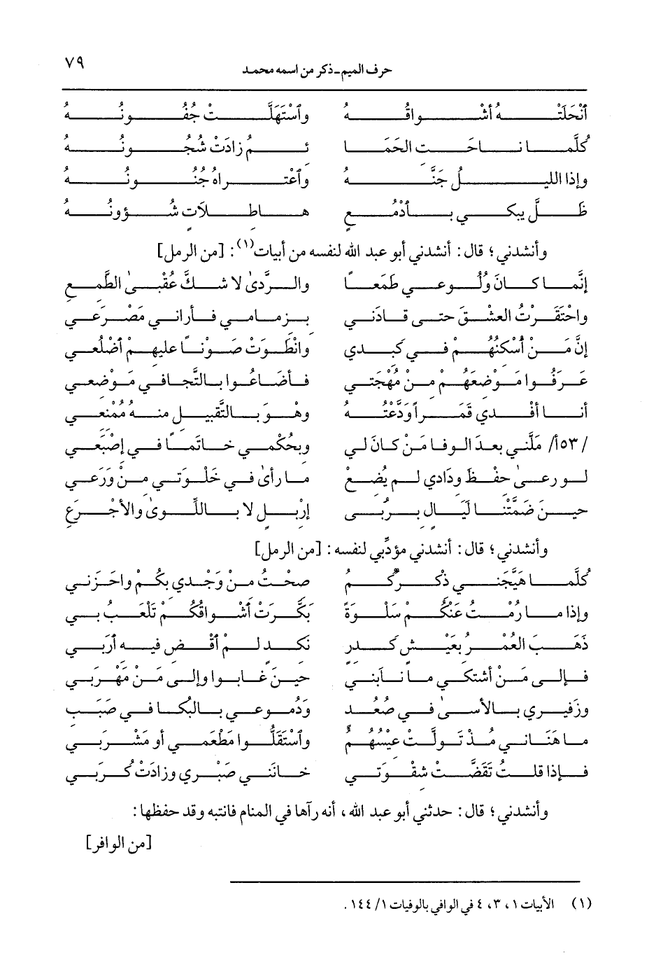 وأنشدني؛ قال: أنشدني أبو عبد الله لنفسه من أبيات: [من الرمل]