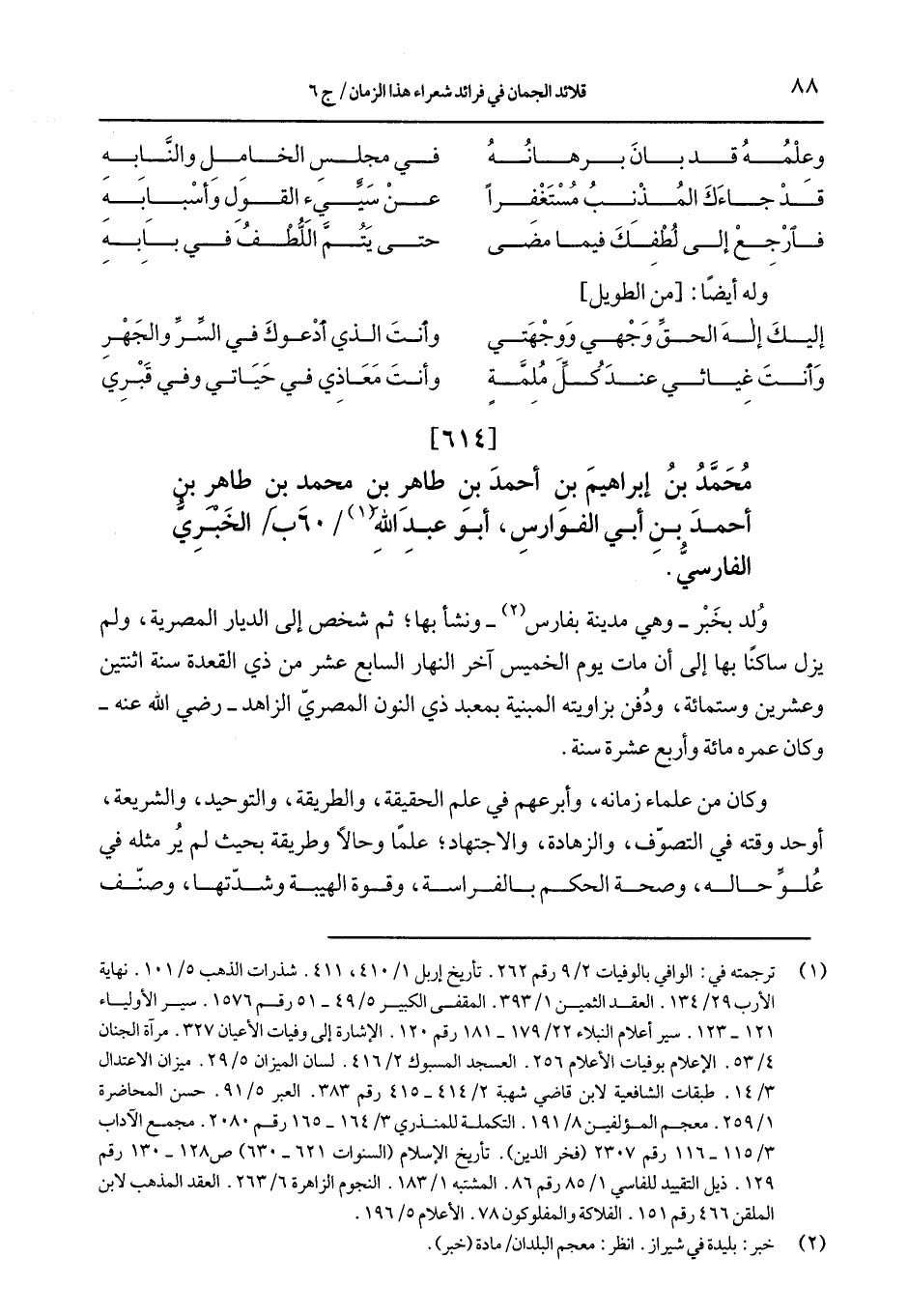 محمد بن إبراهيم بن أحمد بن طاهر بن محمد بن طاهر بن أحمد بن أبي الفوارس، أبو عبد الله الخبري الفارسي.