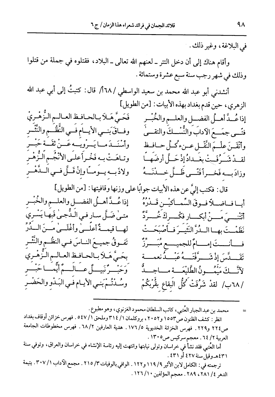 كتاب قلائد الجمان في فرائد شعراء هذا الزمان (اسم الجزء: 5)
