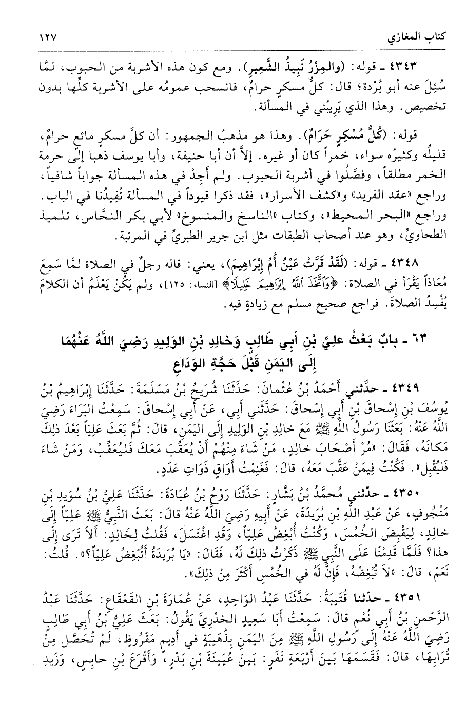 4343 - قوله: (والمِزْرُ نَبِيذُ الشَّعِيرِ) ومع كون هذه الأشربة من الحبوب، لمَّا سُئِلَ عنه أبو بُرْدة؛ قال: كلُّ مسكرٍ حرامٌ، فانسحب عمومُه على الأشربة كلِّها بدون تخصيص. وهذا الذي يَرِيبُني في المسألة.
