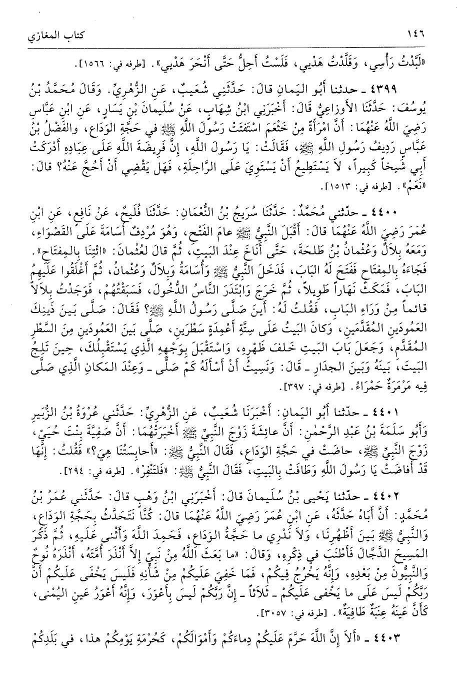 4403 - «أَلاَ إِنَّ اللَّهَ حَرَّمَ عَلَيْكُمْ دِمَاءَكُمْ وَأَمْوَالَكُمْ، كَحُرْمَةِ يَوْمِكُمْ هَذَا، فِى بَلَدِكُمْ