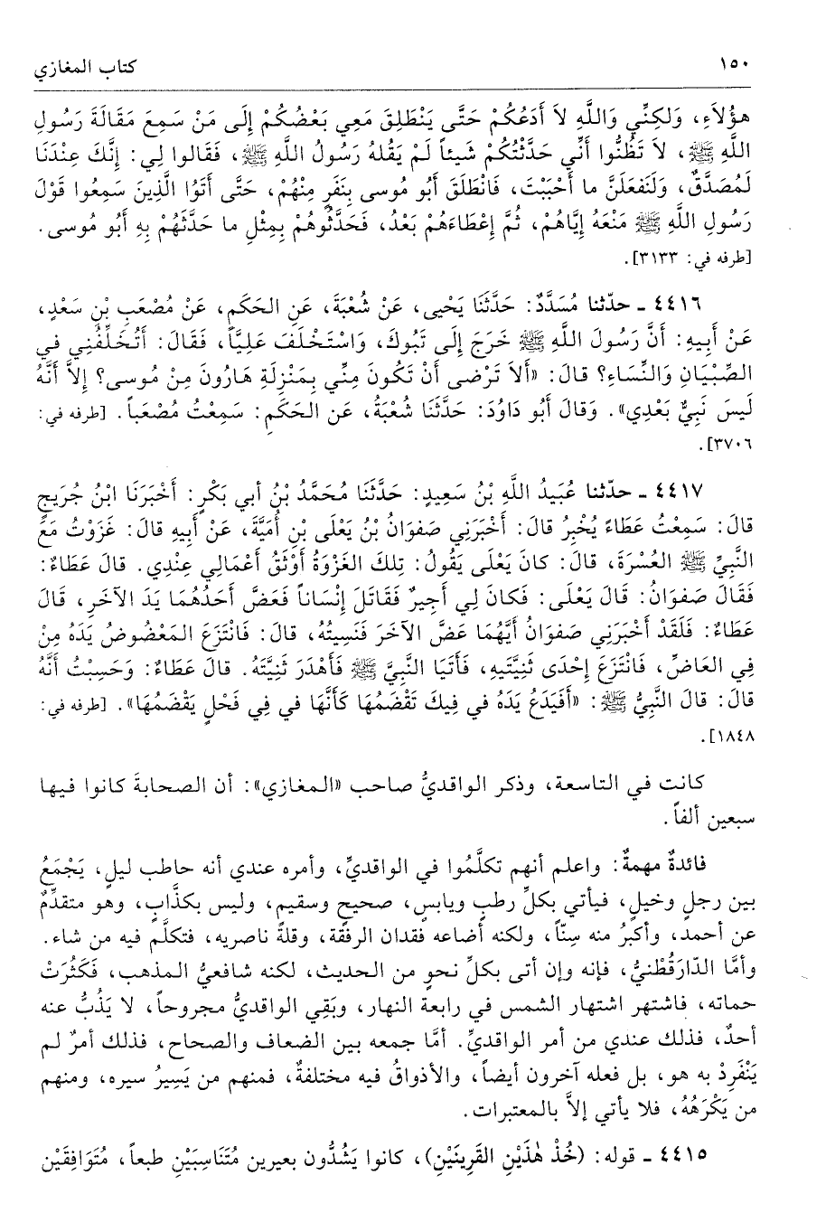 فائدةٌ مهمةٌ: واعلم أنهم تكلَّمُوا في الواقديِّ، وأمره عندي أنه حاطب ليلٍ، يَجْمَعُ بين رجلٍ وخيلٍ، فيأتي بكلِّ رطبٍ ويابسٍ، صحيحٍ وسقيمٍ، وليس بكذَّابٍ، وهو متقدِّمٌ عن أحمد، وأكبرُ منه سِنًّا، ولكنه أضاعه فقدان الرفقة، وقلة ناصريه، فتكلَّم فيه من شاء. وأمَّا الدّارَقُطْنيُّ، فإنه وإن أتى بكلِّ نحوٍ من الحديث، لكنه شافعيُّ المذهب، فَكَثُرَتْ حماته، فاشتهر اشتهار الشمس في رابعة النهار، وبَقِي الواقديُّ مجروحًا، لا يَذُبُّ عنه أحدٌ، فذلك عندي من أمر الواقديِّ. أمَّا جمعه بين الضعاف والصحاح، فذلك أمرٌ لم يَنْفَرِدْ به هو، بل فعله آخرون أيضًا، والأذواقُ فيه مختلفةٌ، فمنهم من يَسِيرُ سيره، ومنهم من يَكْرَهُهُ، فلا يأتي إلَّا بالمعتبرات.