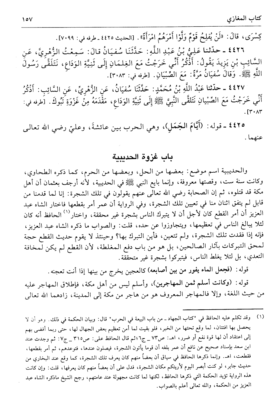 4427 - حَدَّثَنَا عَبْدُ اللَّهِ بْنُ مُحَمَّدٍ حَدَّثَنَا سُفْيَانُ عَنِ الزُّهْرِىِّ عَنِ السَّائِبِ أَذْكُرُ أَنِّى خَرَجْتُ مَعَ الصِّبْيَانِ نَتَلَقَّى النَّبِىَّ - صلى الله عليه وسلم - إِلَى ثَنِيَّةِ الْوَدَاعِ مَقْدَمَهُ مِنْ غَزْوَةِ تَبُوكَ. طرفاه 3083، 4426 - تحفة 3800