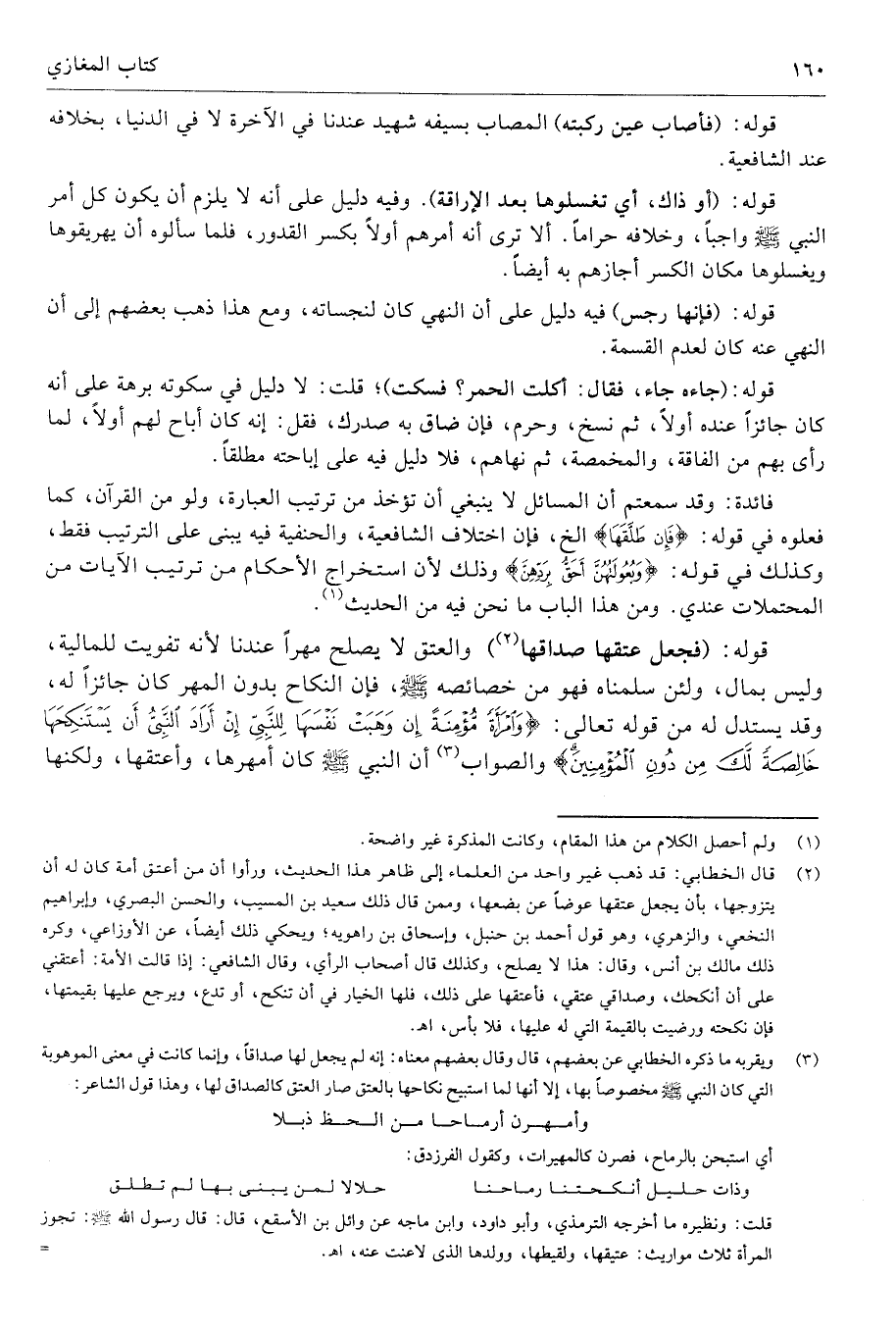 وليس بمال، ولئن سلمناه فهو من خصائصه - صلى الله عليه وسلم -، فإن النكاح بدون المهر كان جائزًا له، وقد يستدل له من قوله تعالى: {وَامْرَأَةً مُؤْمِنَةً إِنْ وَهَبَتْ نَفْسَهَا لِلنَّبِيِّ إِنْ أَرَادَ النَّبِيُّ أَنْ يَسْتَنْكِحَهَا خَالِصَةً لَكَ مِنْ دُونِ الْمُؤْمِنِينَ} والصواب (¬3) أن النبي - صلى الله عليه وسلم - كان أمهرها، وأعتقها، ولكنها