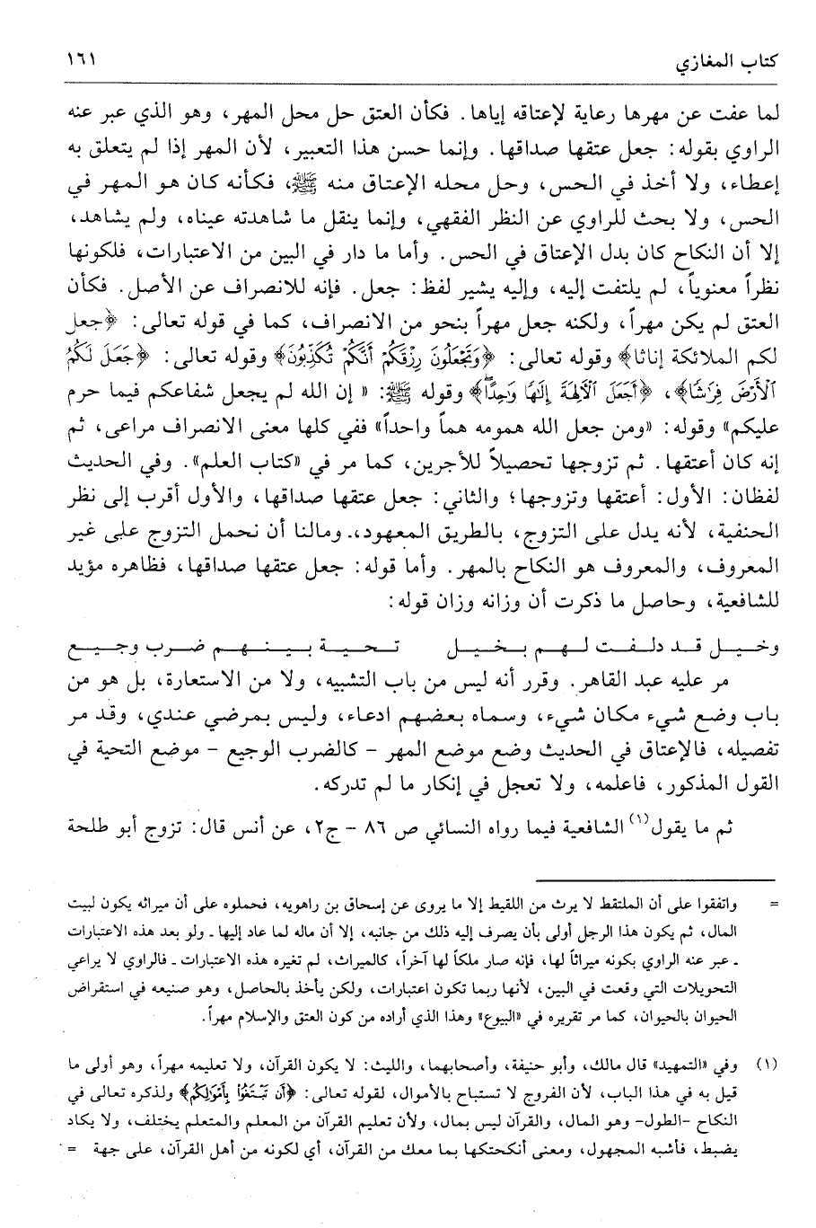 لما عفت عن مهرها رعاية لإعتاقه إياها. فكأن العتق حل محل المهر، وهو الذي عبر عنه الراوي بقوله: جعل عتقها صداقها. وإنما حسن هذا التعبير، لأن المهر إذا لم يتعلق به إعطاء، ولا أخذ في الحس، وحل محله الإعتاق منه - صلى الله عليه وسلم -، فكأنه كان هو المهر في الحس، ولا بحث للراوي عن النظر الفقهي، وإنما ينقل ما شاهدته عيناه، ولم يشاهد، إلا أن النكاح كان بدل الإعتاق في الحس. وأما ما دار في البين من الاعتبارات، فلكونها نظرًا معنويًا، لم يلتفت إليه، وإليه يشير لفظ: جعل. فإنه للانصراف عن الأصل. فكأن العتق لم يكن مهرًا، ولكنه جعل مهرًا بنحو من الانصراف، كما في قوله تعالى: {وَجَعَلُوا الْمَلَائِكَةَ الَّذِينَ هُمْ عِبَادُ الرَّحْمَنِ إِنَاثًا} [الزخرف: 19] وقوله تعالى: {وَتَجْعَلُونَ رِزْقَكُمْ أَنَّكُمْ تُكَذِّبُونَ} وقوله تعالى: {جَعَلَ لَكُمُ الْأَرْضَ فِرَاشًا}، {أَجَعَلَ الْآلِهَةَ إِلَهًا وَاحِدًا} وقوله - صلى الله عليه وسلم -: "إن الله لم يجعل شفاعكم فيما حرم عليكم" وقوله: "ومن جعل الله همومه همًا واحدًا" ففي كلها معنى الانصراف مراعى، ثم إنه كان أعتقها. ثم تزوجها تحصيلًا للأجرين، كما مر في "كتاب العلم". وفي الحديث لفظان: الأول: أعتقها وتزوجها؛ والثاني: جعل عتقها صداقها، والأول أقرب إلى نظر الحنفية، لأنه يدل على التزوج، بالطريق المعهود،. ومالنا أن نحمل التزوج على غير المعروف، والمعروف هو النكاح بالمهر. وأما قوله: جعل عتقها صداقها، فظاهره مؤيد للشافعية، وحاصل ما ذكرت أن وزانه وزان قوله: