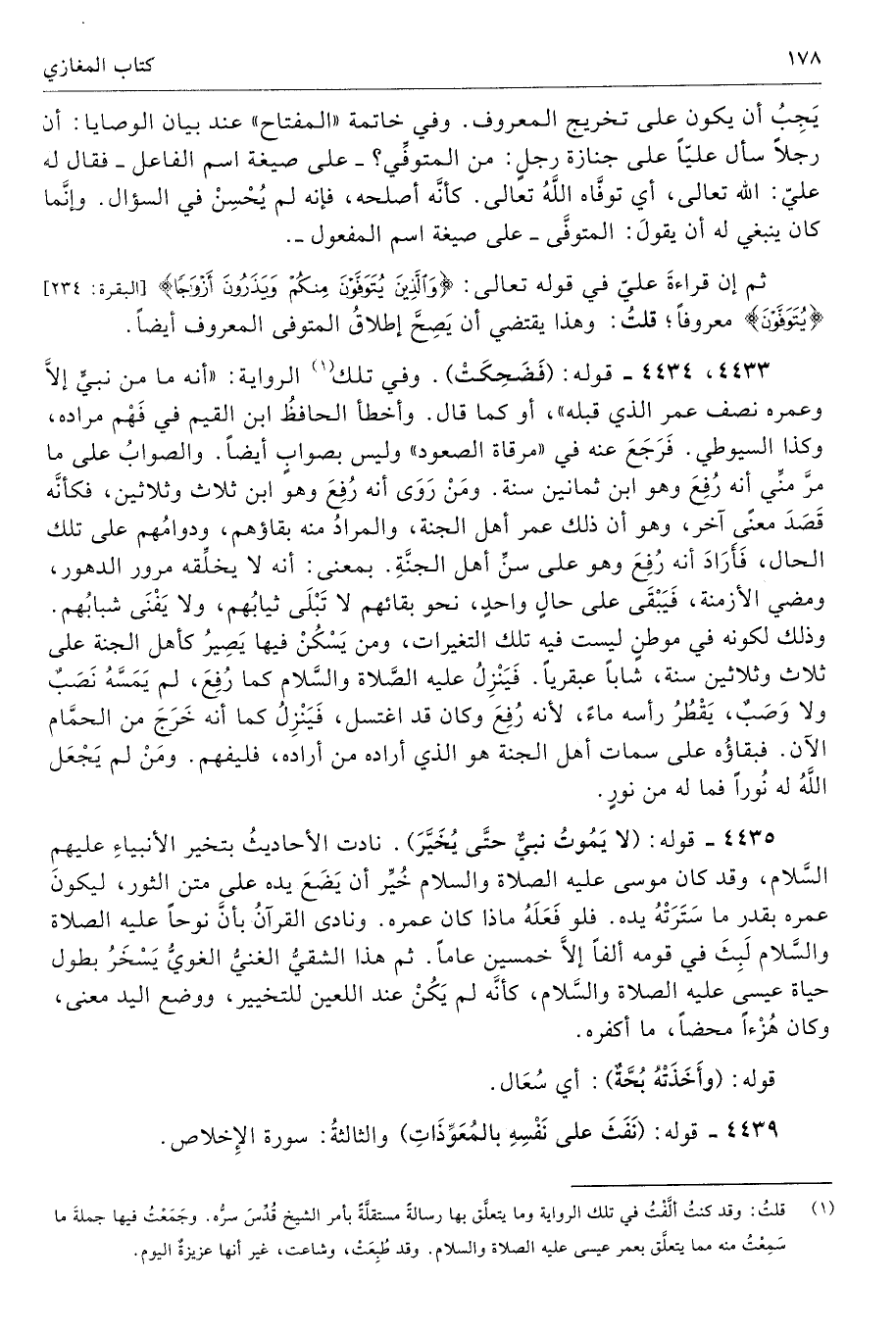 (¬1) قلتُ: وقد كنتُ ألَّفْتُ في تلك الرواية وما يتعلَّق بها رسالة مستقلَّةٌ بأمر الشيخ قُدِّسَ سرُّه. وجَمَعْتُ فيها جملةَ ما سَمِعْتُ منه مما يتعلَّق بعمر عيسى عليه الصلاة والسلام. وقد طُبِعَتْ، وشاعت، غير أنها عزيزةٌ اليوم.