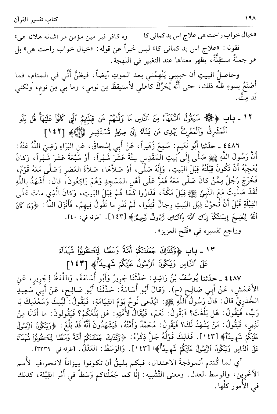 13 - باب {وَكَذَلِكَ جَعَلْنَاكُمْ أُمَّةً وَسَطًا لِتَكُونُوا شُهَدَاءَ عَلَى النَّاسِ وَيَكُونَ الرَّسُولُ عَلَيْكُمْ شَهِيدًا} [البقرة: 143]