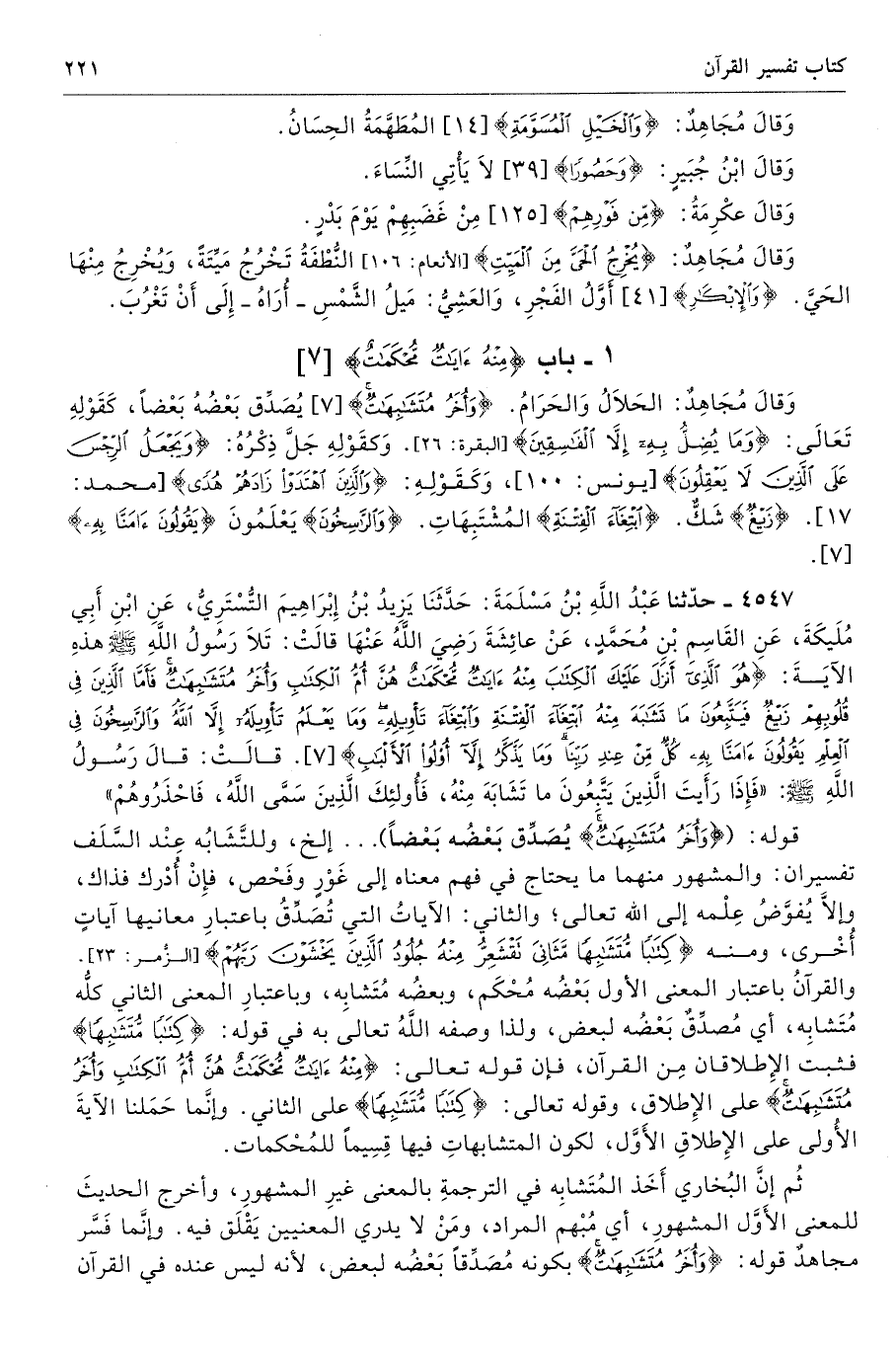 1 - باب {مِنْهُ آيَاتٌ مُحْكَمَاتٌ} [آل عمران: 7]