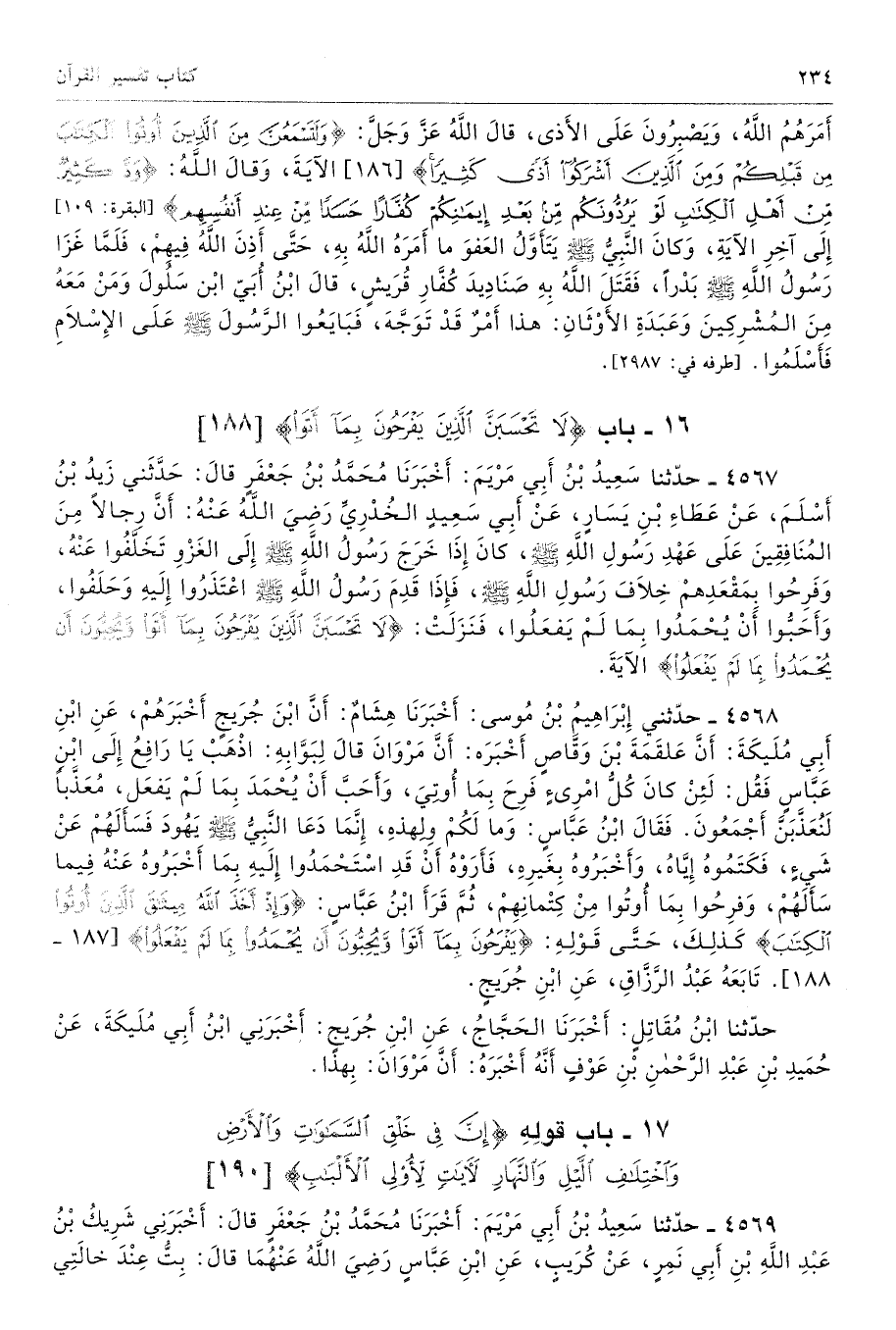 16 - باب {لَا تَحْسَبَنَّ الَّذِينَ يَفْرَحُونَ بِمَا أَتَوْا} [آل عمران: 188]