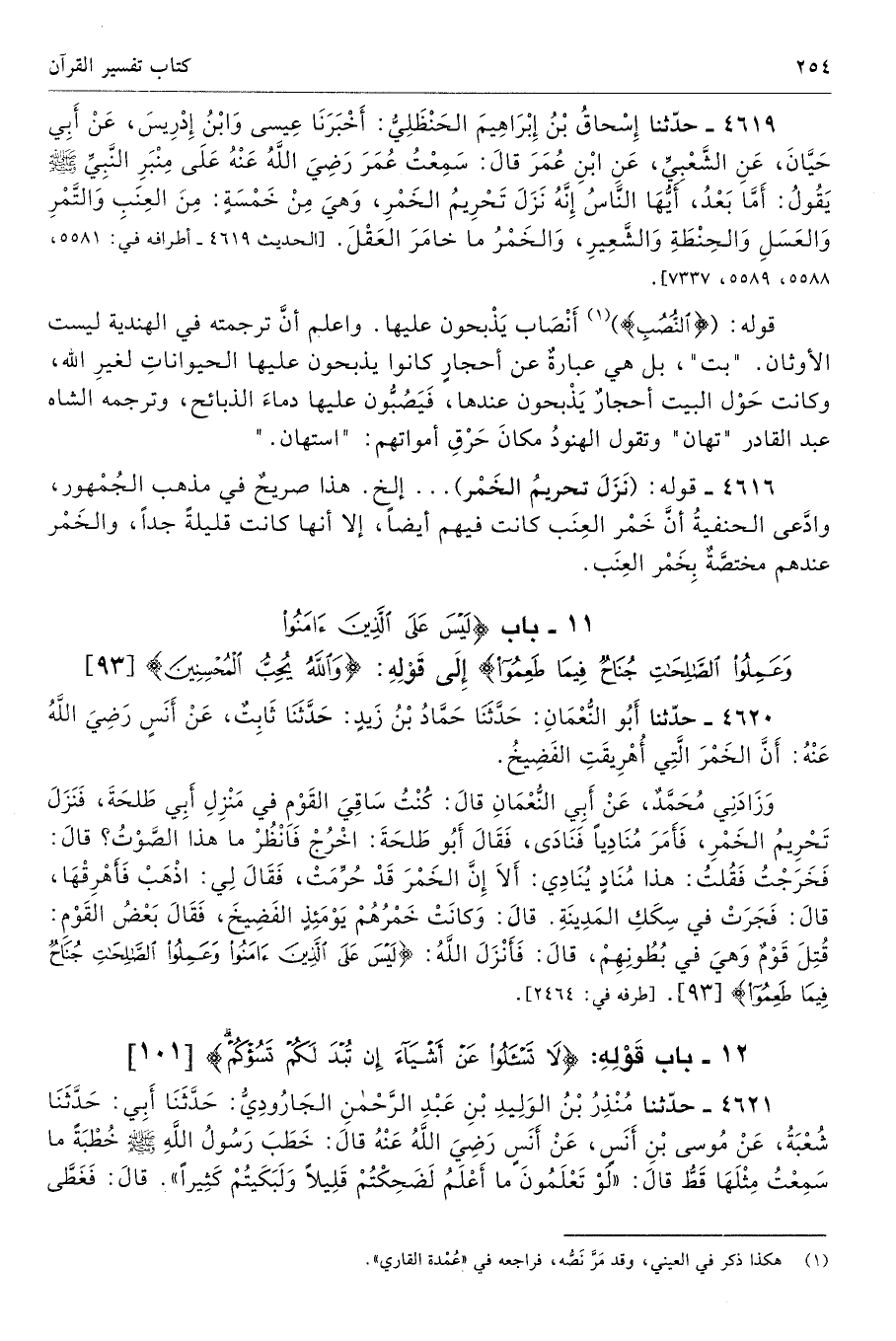 11 - باب {لَيْسَ عَلَى الَّذِينَ آمَنُوا وَعَمِلُوا الصَّالِحَاتِ جُنَاحٌ فِيمَا طَعِمُوا} إِلَى قَوْلِهِ: {وَاللَّهُ يُحِبُّ الْمُحْسِنِينَ} [المائدة: 93]