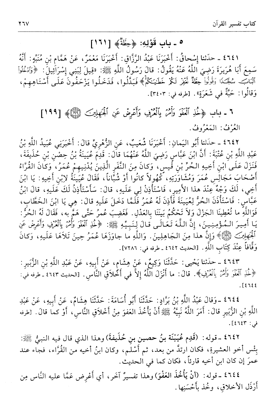 6 - باب {خُذِ الْعَفْوَ وَأْمُرْ بِالْعُرْفِ وَأَعْرِضْ عَنِ الْجَاهِلِينَ (199)} [الأعراف: 199]