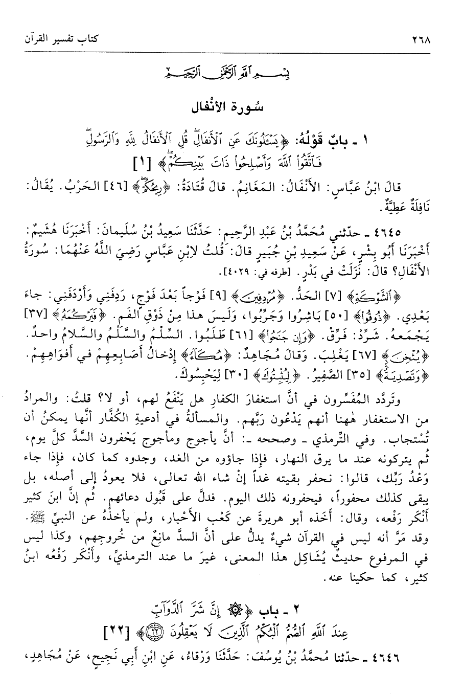 2 - باب {إِنَّ شَرَّ الدَّوَابِّ عِنْدَ اللَّهِ الصُّمُّ الْبُكْمُ الَّذِينَ لَا يَعْقِلُونَ (22)} [الأنفال: 22]