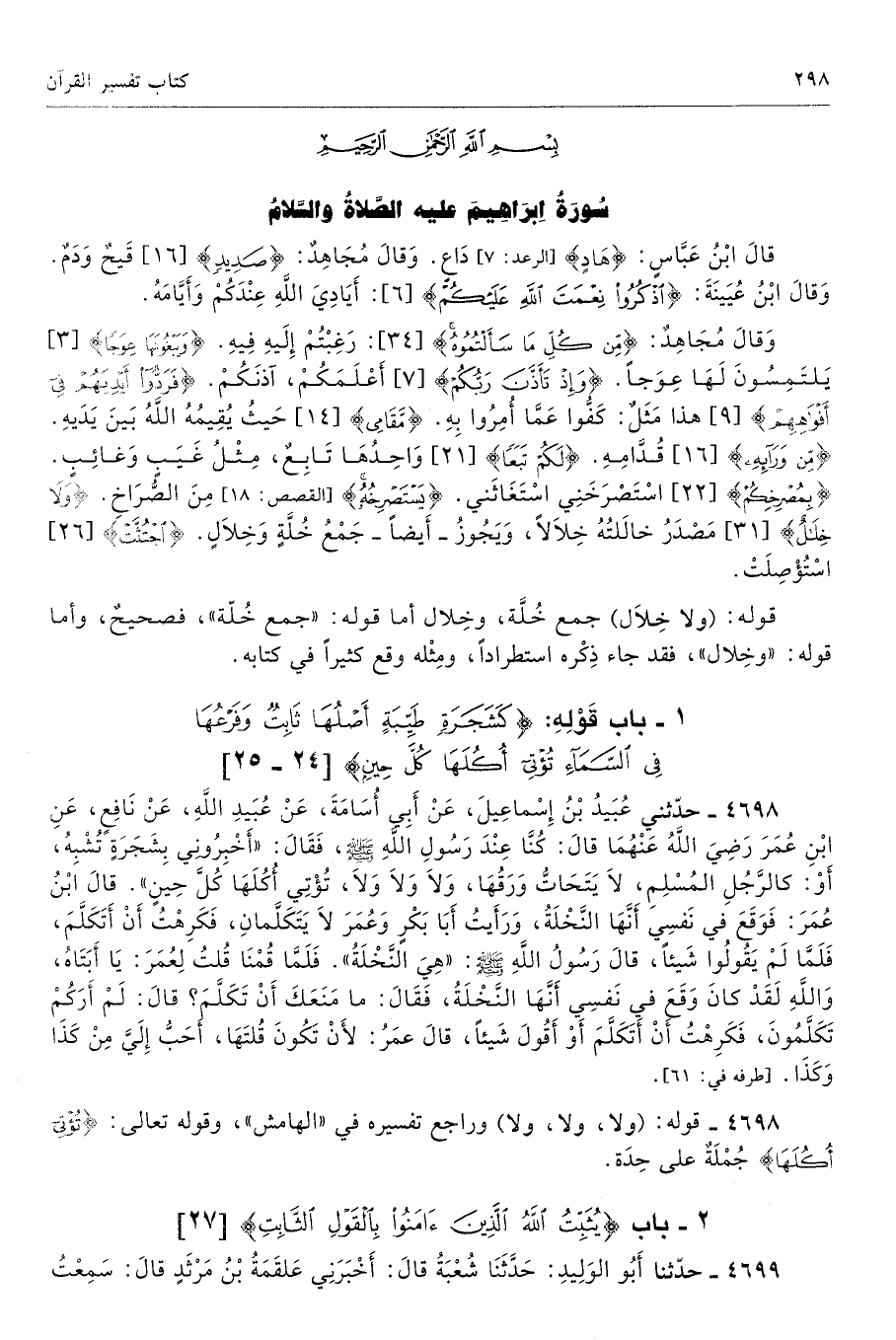 1 - باب قَوْلِهِ: {كَشَجَرَةٍ طَيِّبَةٍ أَصْلُهَا ثَابِتٌ وَفَرْعُهَا فِي السَّمَاءِ (24) تُؤْتِي أُكُلَهَا كُلَّ حِينٍ} [إبراهيم: 24 - 25]